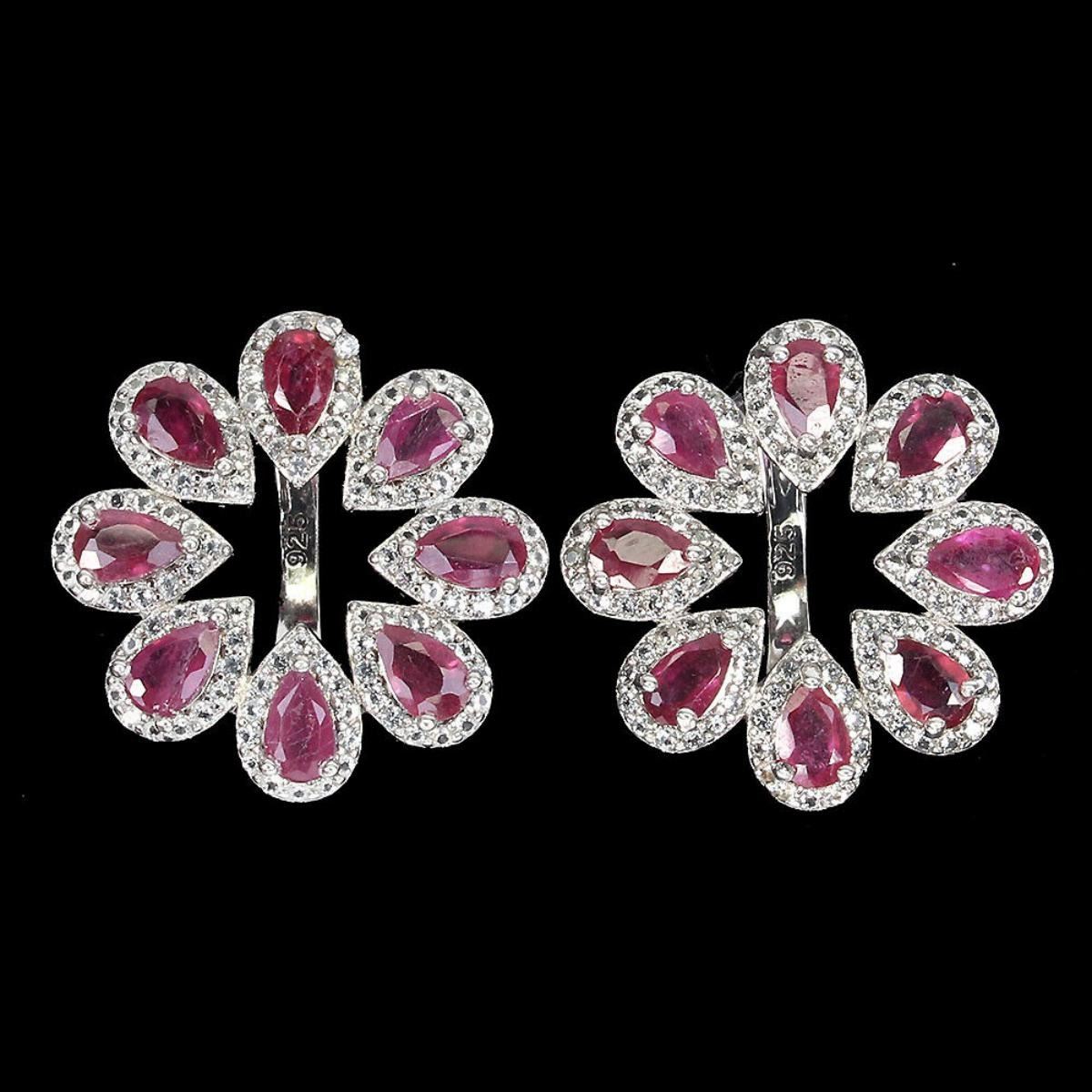 925 STERLING SILVER;PLATE-14K WHITE GOLD;MAIN STONE-RUBY;OTHER GEMS-WHITE TOPAZ;TOTAL WEIGHT-6.89 GRAM (TOTAL WEIGHT OF SILVER + STONE);DIMENSION-* STONE 1.0 TO 5.0 X 3.0 MM.* FACE EARRINGS 21.0 X 21.0 MM.;MAIN STONE SHAPE-PEAR ;MAIN STONE COLOR-PIGEON BLOOD RED;TREATMENT-YES;ORIGIN-MADAGASCAR;HARDNESS-9;