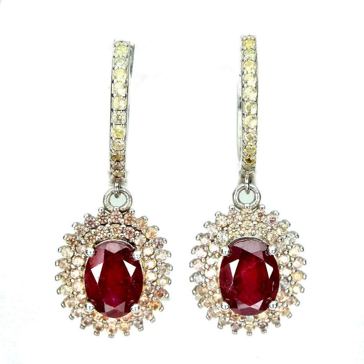 925 STERLING SILVER;PLATE-14K WHITE GOLD;MAIN STONE-RUBY;OTHER GEMS-SAPPHIRE;TOTAL WEIGHT-5.03 GRAM (TOTAL WEIGHT OF SILVER + STONE);DIMENSION-* STONE 1.0 TO 8.0 X 6.0 MM.* FACE EARRINGS 28.0 X 12.0 MM.;MAIN STONE SHAPE-OVAL; MAIN STONE COLOR-PIGEON BLOOD RED;TREATMENT-YES;ORIGIN-MADAGASCAR;HARDNESS-9.0;