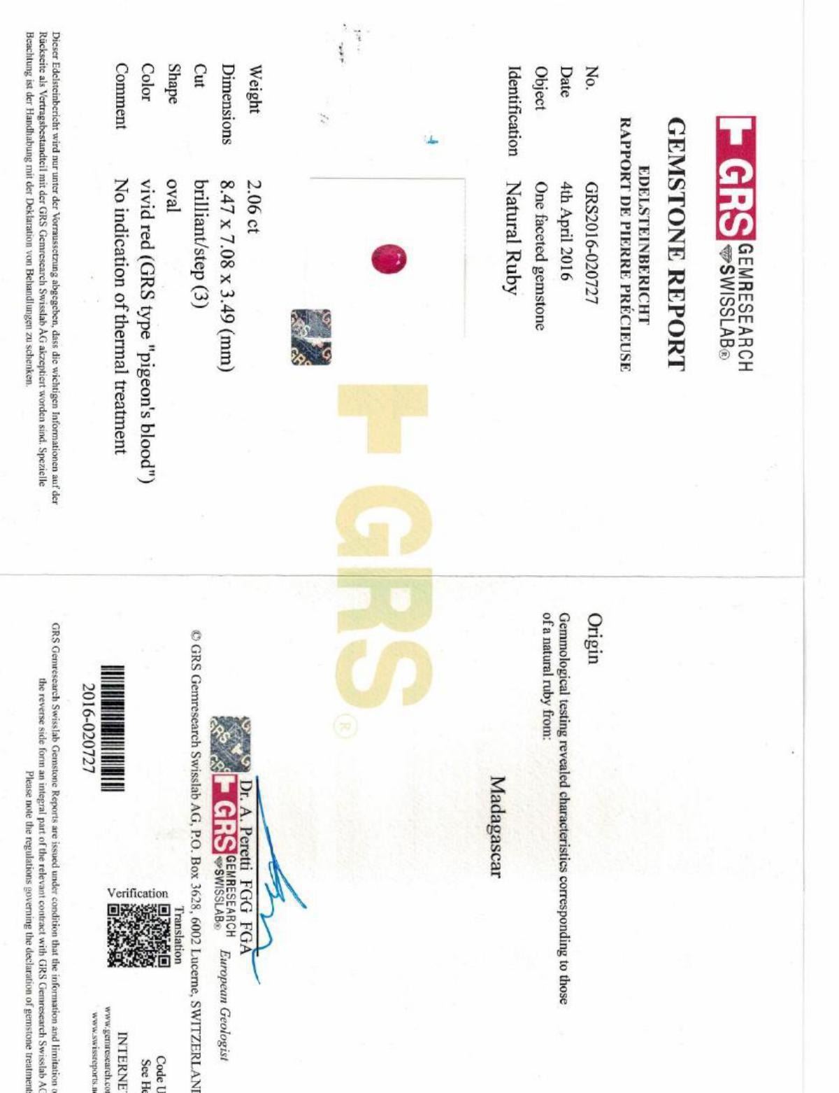 Natural Pigeon Blood Red / Vivid Red Untreated Ruby....size 8.47 x 7.08 x 3.49 MM......totally eye clean.......completely untreated....Certified by GRS Swiss Lab.