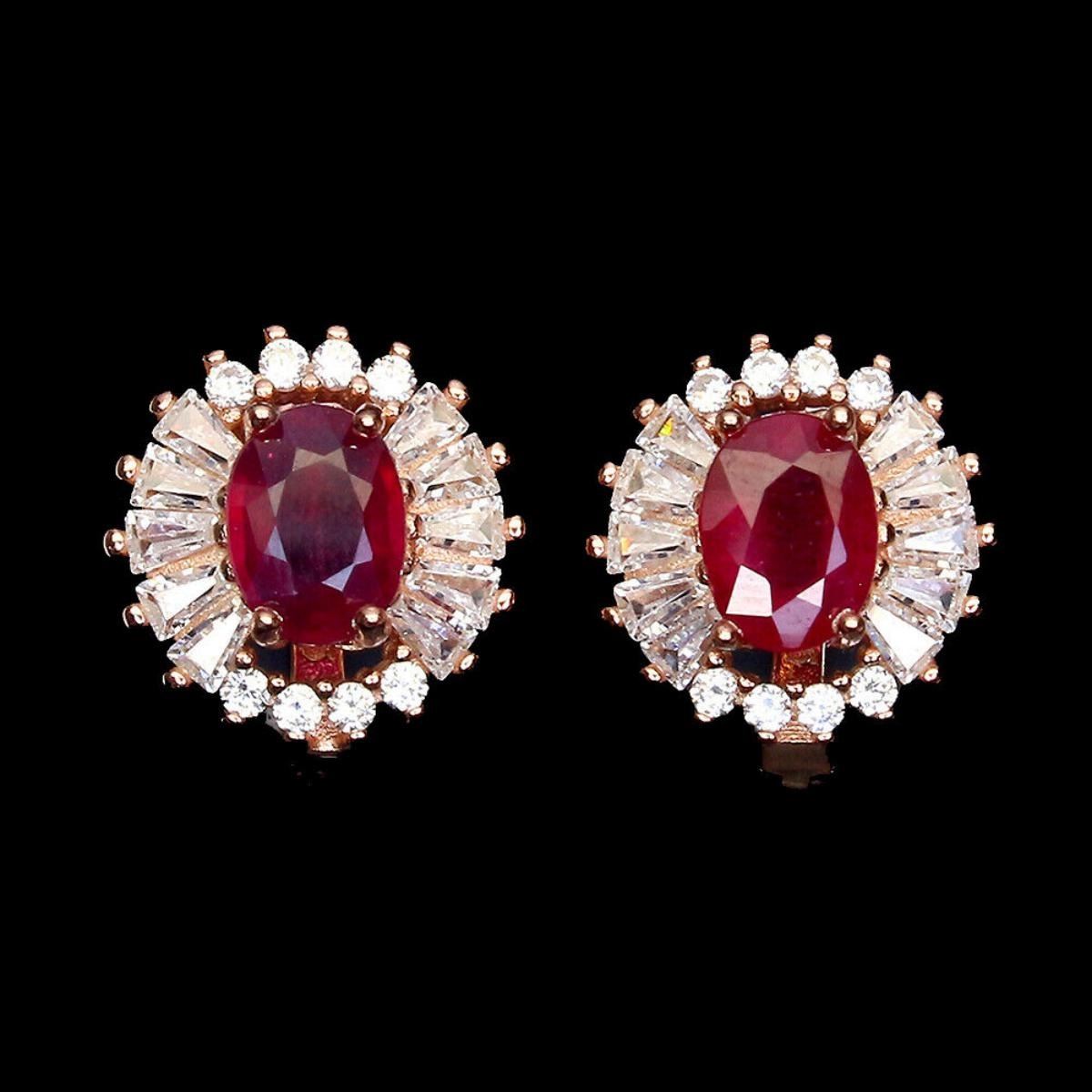 925 STERLING SILVER;PLATE-14K ROSE GOLD;MAIN STONE-RUBY;TOTAL WEIGHT-5.75 GRAM (TOTAL WEIGHT OF SILVER + STONE)DIMENSION-* STONE 8.0 X 6.0 MM.;* FACE EARRINGS- 14.0 X 13.0 MM.;MAIN STONE SHAPE-OVAL CUT;MAIN STONE COLOR-BLOOD RED;TREATMENT-Yes;ORIGIN-MADAGASCAR;HARDNESS-9;