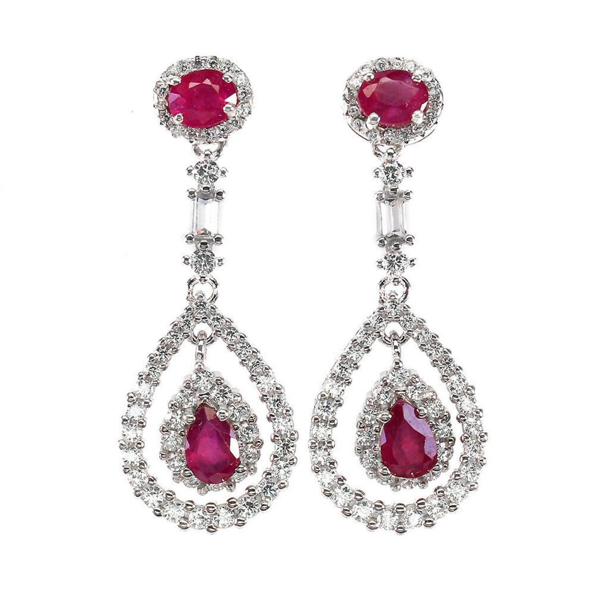 925 STERLING SILVER-PLATE-14K WHITE GOLD-MAIN STONE-RUBYTOTAL WEIGHT-6.79 GRAM (TOTAL WEIGHT OF SILVER + STONE)DIMENSION-* STONE 5.0 X 4.0 TO 6.0 X 4.0 MM.* FACE EARRINGS- 35.0 X 14.0 MM.MAIN STONE SHAPE--PEAR CUTMAIN STONE COLOR-- BLOOD REDTreatment - Yes;TREATME-MADAGASCARHARDNESS-9.0