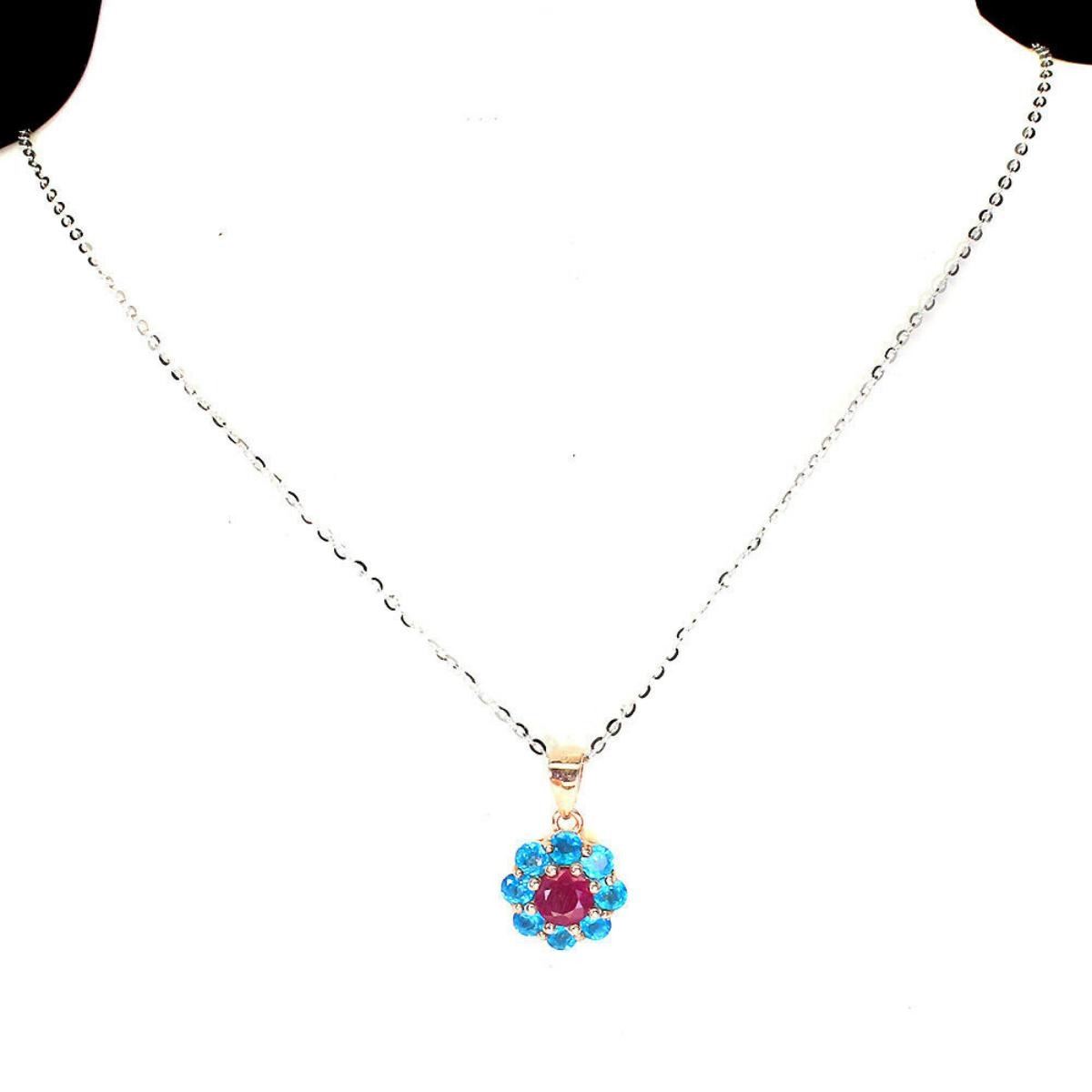 925 STERLING SILVER;PLATE-14K ROSE GOLD;LENGTH (INCHES)18;MAIN STONE-RUBY;OTHER GEMS-APATITE;TOTAL WEIGHT-2.59 GRAM (TOTAL WEIGHT OF SILVER + STONE)DIMENSION-* STONE 3.0 TO 5.0 MM.;* TOTAL LENGTH- 18.0 INCHES.;* STONES PART LENGTH- 18.0 X 11.0 MM.;MAIN STONE SHAPE-ROUND CUT;MAIN STONE COLOR-BLOOD RED;TREATMENT--Yes;ORIGIN-MADAGASCAR;HARDNESS-9.0;