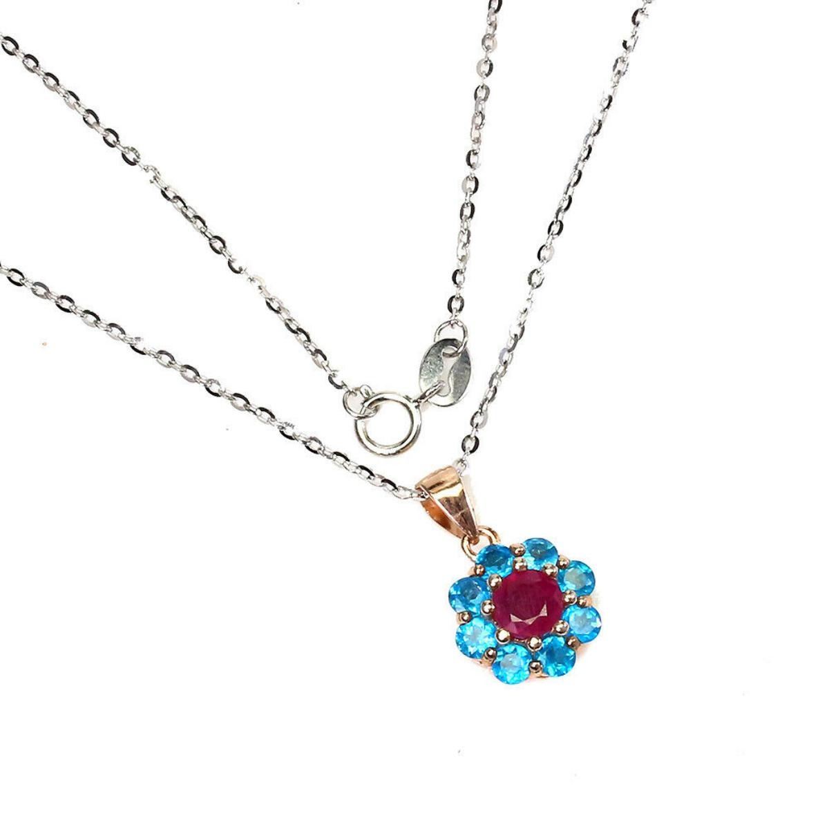 925 STERLING SILVER;PLATE-14K ROSE GOLD;LENGTH (INCHES)18;MAIN STONE-RUBY;OTHER GEMS-APATITE;TOTAL WEIGHT-2.59 GRAM (TOTAL WEIGHT OF SILVER + STONE)DIMENSION-* STONE 3.0 TO 5.0 MM.;* TOTAL LENGTH- 18.0 INCHES.;* STONES PART LENGTH- 18.0 X 11.0 MM.;MAIN STONE SHAPE-ROUND CUT;MAIN STONE COLOR-BLOOD RED;TREATMENT--Yes;ORIGIN-MADAGASCAR;HARDNESS-9.0;