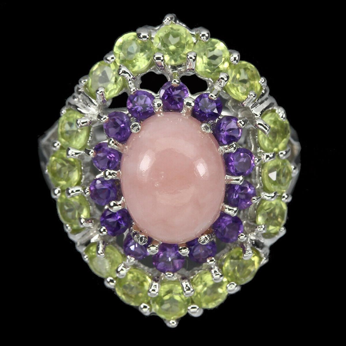 925 STERLING SILVER;PLATE-14K WHITE GOLD;RING SIZE-9(resizeable);MAIN STONE-PINK OPAL;OTHER GEMS-AMETHYST, PERIDOT;TOTAL WEIGHT-7.08 GRAM (TOTAL WEIGHT OF SILVER + STONE)DIMENSION-* STONE 2.0 TO 10.0 X 8.0 MM. * RING SIZE 9.0 * FACE RING 24.0 X 20.0 MM.;MAIN STONE SHAPE-OVAL CABOCHON;TREATMENT-UNHEATED;ORIGIN-ETHIOPIA;HARDNESS-5.5 - 6.5;
