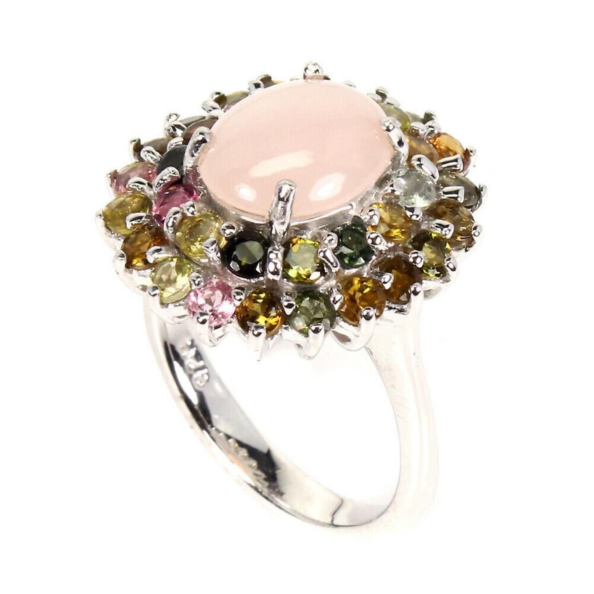 925 STERLING SILVER;PLATE-14K WHITE GOLD;RING SIZE-8(resizeable)MAIN STONE-PINK OPAL;OTHER GEMS-SAPPHIRE;TOTAL WEIGHT-7.7 GRAM (TOTAL WEIGHT OF SILVER + STONE)DIMENSION* STONE 2.5 TO 11.0 X 9.0 MM. * FACE RING 21.0 X 19.0 MM.;MAIN STONE SHAPE-OVAL CABOCHON;MAIN STONE COLOR-TOP NICE PINK;TREATMENT-UNHEATED;ORIGIN-ETHIOPIA;HARDNESS-5.5 - 6.5;