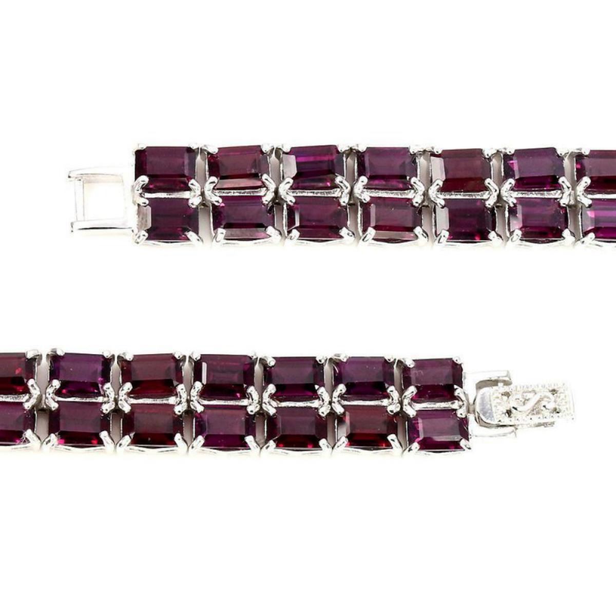 925 STERLING SILVER;PLATE14K WHITE GOLD;/LENGTH (INCHES)7.5MAIN STONERHODOLITE GARNETOTHER GEMSTOTAL WEIGHT172.17 CT (TOTAL WEIGHT OF SILVER + STONE)DIMENSION* STONE 7.0 X 5.0 MM. * FACE BRACELET 180.0 X 12.0 MM.MAIN STONE SHAPEOCTAGON CUTMAIN STONE COLORTOP RICH PINK RASPBERRYCLARITY/GRADEIF TO VVS; TREATMENT UNHEATED; ORIGIN AFRICA HARDNESS 7.0 - 7.5