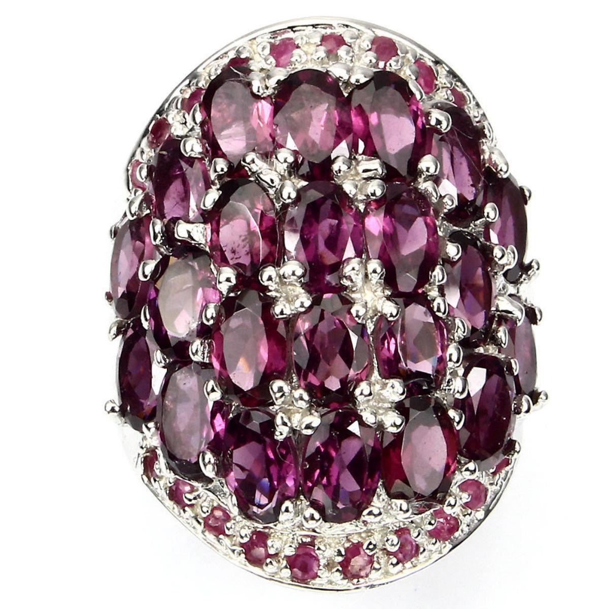 925 STERLING SILVER; PLATE -14K WHITE GOLD; RING SIZE/LENGTH (INCHES)- 8; MAIN STONE -RHODOLITE GARNET; OTHER GEMS -RUBY; TOTAL WEIGHT -81.81 CT (TOTAL WEIGHT OF SILVER + STONE) DIMENSION * STONE 2.0 TO 6.0 X 4.0 MM. * RING SIZE 8.0 * FACE RING 30.0 X 23.0 MM.; MAIN STONE SHAPE -OVAL CUT; MAIN STONE COLOR -TOP RICH PINK RASPBERRY; CLARITY/GRADE -IF TO VVS LUSTER GRACEFULLY TREATMENT UNHEATED ORIGIN AFRICA HARDNESS 7