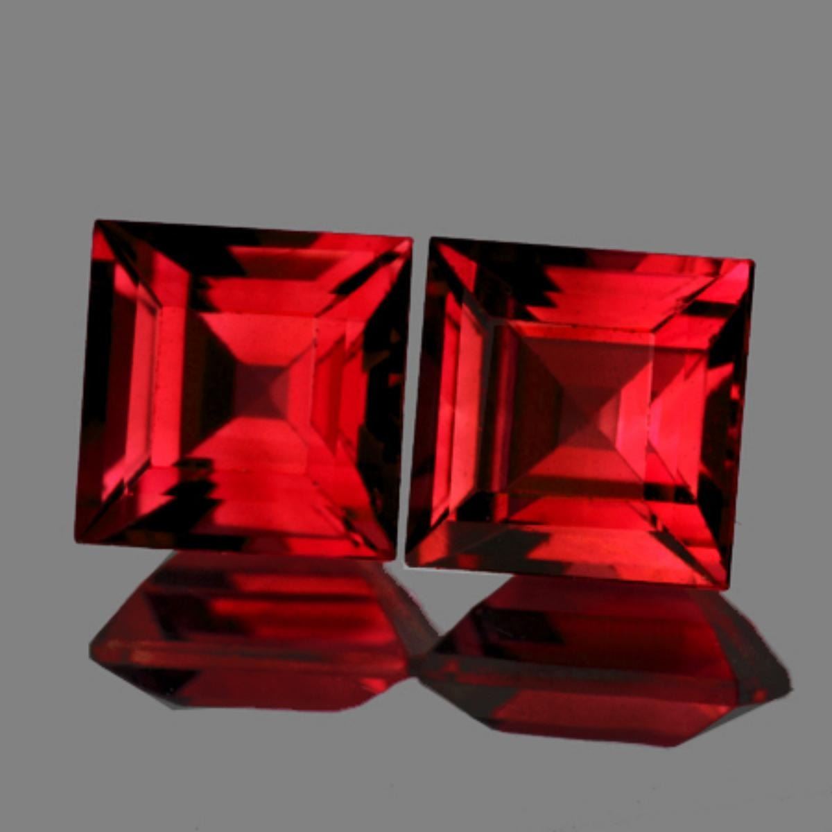 Natural Rhodolite Garnet (Umbalite) WEIGHT : 2.00 - cts SHAPE : Square SIZE ( L x W x D ) : 5.50 mm QUANTITY : 2 pieces ( Matching Pair) COLOR : Raspberry Pink Red AAA Color CLARITY : Flawless-VVS1 AAA Grade ORIGIN : Umba Valley, Tanzania HARDNESS : 7 LUSTER : Best AAA Fire!!! TREATMENT : 100% Natural Unheated