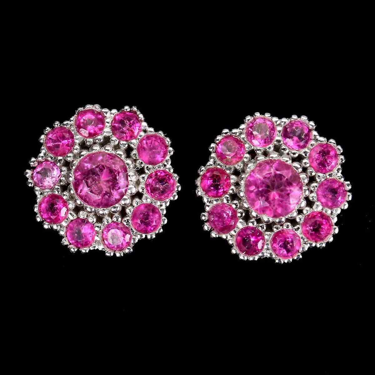 925 STERLING SILVER;PLATE-14K WHITE GOLD;MAIN STONE-PINK TOPAZ;TOTAL WEIGHT-5.3 GRAM (TOTAL WEIGHT OF SILVER + STONE);DIMENSION- * STONE 2.5 TO 5.0 MM.* FACE EARRINGS 14.0 X 14.0 MM.;MAIN STONE SHAPE-ROUND CUT;MAIN STONE COLOR-PINK;CLARITY/GRADE-IF TO VVS;TREATMENT-YES;ORIGIN-BRAZIL;HARDNESS-8.0;