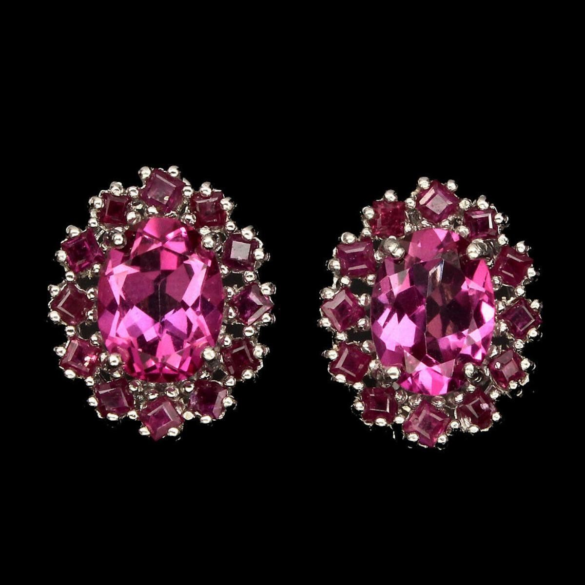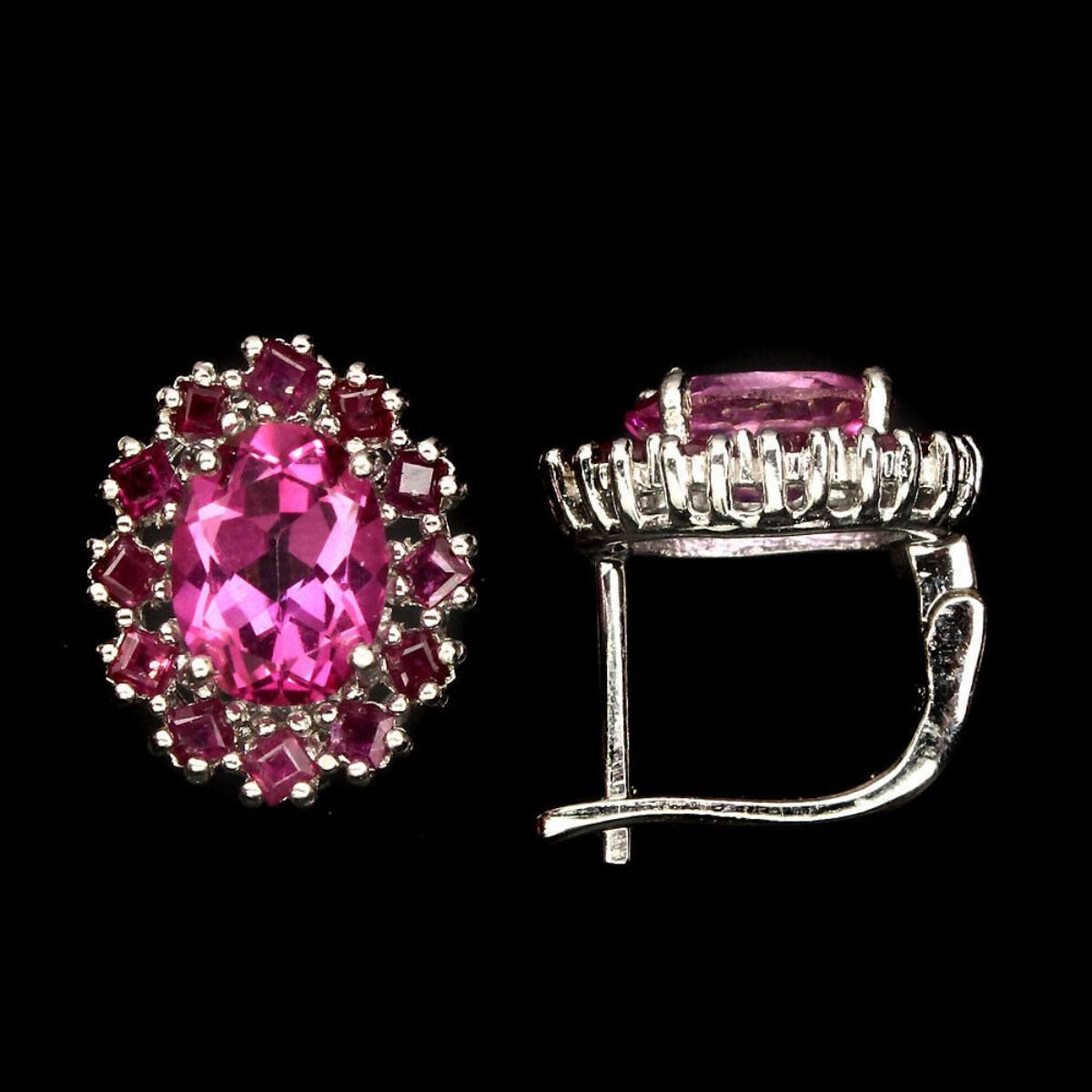925 STERLING SILVER;PLATE....14K WHITE GOLD;MAIN STONE-PINK TOPAZ;OTHER GEMS-RUBY;TOTAL WEIGHT-21.54 CT (TOTAL WEIGHT OF SILVER + STONE)DIMENSION* STONE 2.0 TO 8.0 X 6.0 MM. * FACE EARRINGS 13.0 X 11.0 MM.;MAIN STONE SHAPEOVAL CUT;MAIN STONE COLORAAA PINK;CLARITY/GRADEIF;LUSTERGORGEOUS;ORIGINBRAZIL;HARDNESS8;
