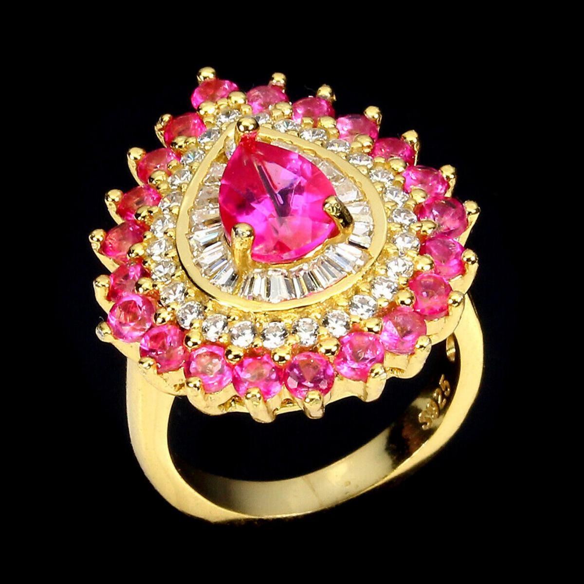 925 STERLING SILVER;PLATE-14K YELLOW GOLD;RING SIZE/Resizable-6;MAIN STONE-PINK TOPAZ;TOTAL WEIGHT-7.26 GRAM (TOTAL WEIGHT OF SILVER + STONE)DIMENSION* STONE 2.5 TO 8.0 X 6.0 MM.;* FACE RING- 23.0 X 20.0 MM.;MAIN STONE SHAPE-PEAR CUT;MAIN STONE COLOR-PINK;CLARITY/GRADE-IF TO VVS;ORIGIN-BRAZIL;HARDNESS-8;