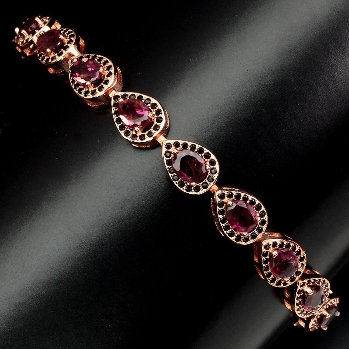 925 STERLING SILVER;PLATE14K ROSE GOLD;LENGTH (INCHES)7.5;MAIN STONETOURMALINE;OTHER GEMSBLACK SPINEL;TOTAL WEIGHT58.20 CT (TOTAL WEIGHT OF SILVER + STONE)DIMENSION* STONE 1.0 TO 5.0 X 4.0 MM. * FACE BRACELET 174.0 X 7.0 MM.;MAIN STONE SHAPEOVAL CUT;MAIN STONE COLORTOP RICH PINK;CLARITY/GRADETRANSPARENT;LUSTEREXQUISITE;TREATMENTUNHEATED;ORIGINBRAZIL;HARDNESS7.0 - 8.0