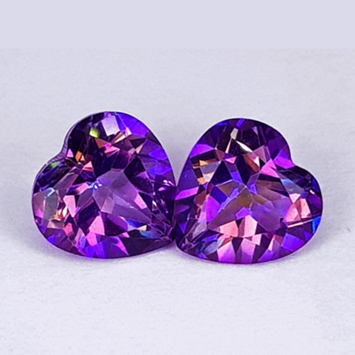 Natural Mystic Topaz; WEIGHT : 4.38 cts; SHAPE : Heart; SIZE ( L x W x D ) : 8.00 mm; QUANTITY : 2 piece; COLOR : Pinkish Purple Mystic Best AAA Color; CLARITY : Flawless-VVS1 - AAA Grade; ORIGIN : Africa; HARDNESS : 8 LUSTER : Excellent!!! TREATMENT : Treated
