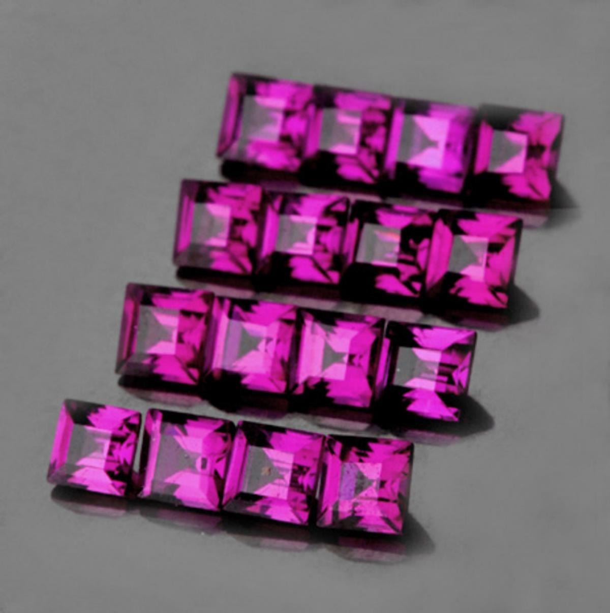 Natural Rhodolite;SIZE ( L x W x D ) : 2.50 mm;COLOR : Pinkish Purple ; AAA Color ; SHAPE : Square;QUANTITY : 20 piecesLUSTER : Excellent;CLARITY : Flawless-VVS;HARDNESS : 6-7;ORIGIN : Umba Valley, Tanzania TREATMENT : 100% Natural Unheated