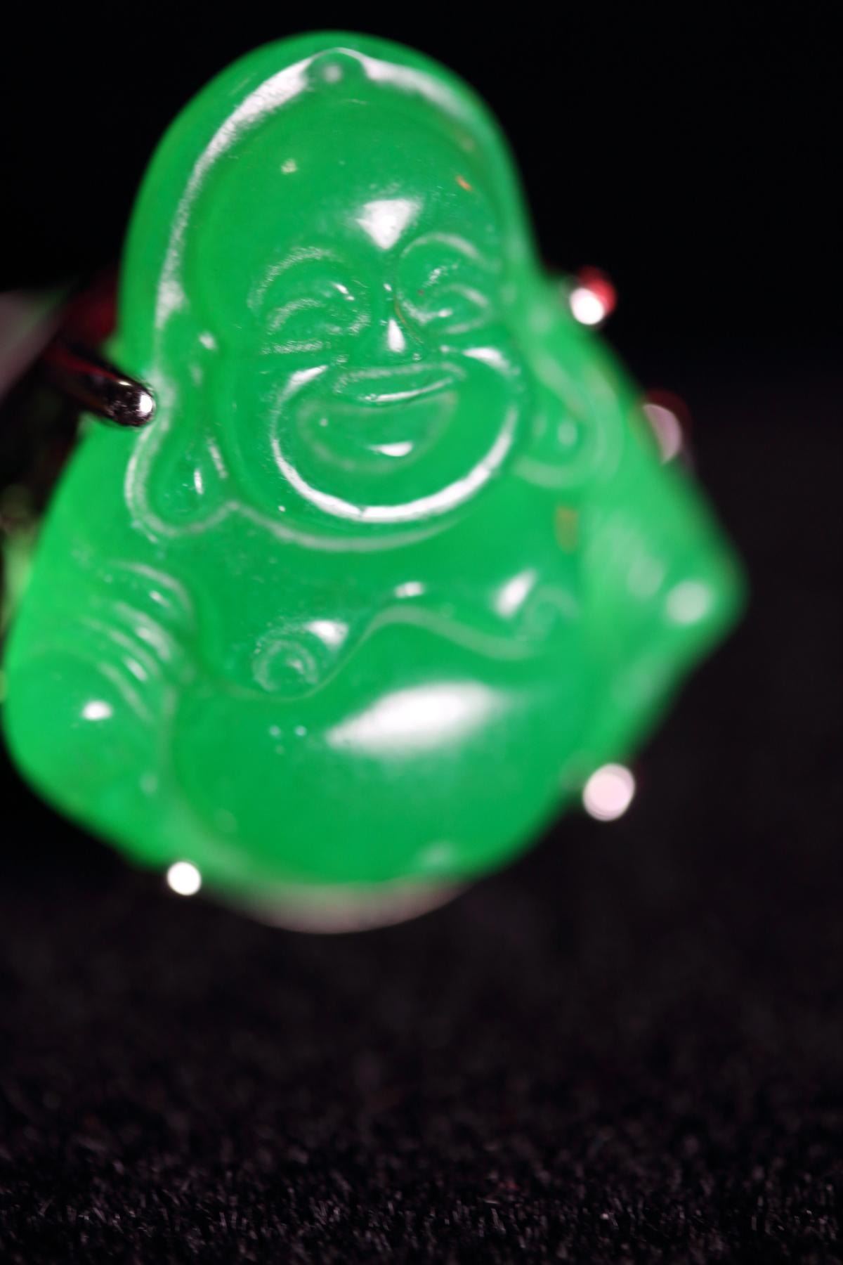 Natural Premium quality Green Jade Buddha Ring .....Hand Carved Green Jade Buddha, Ring Size 7(resizeable).....Buddha Carving 19x18 MM....