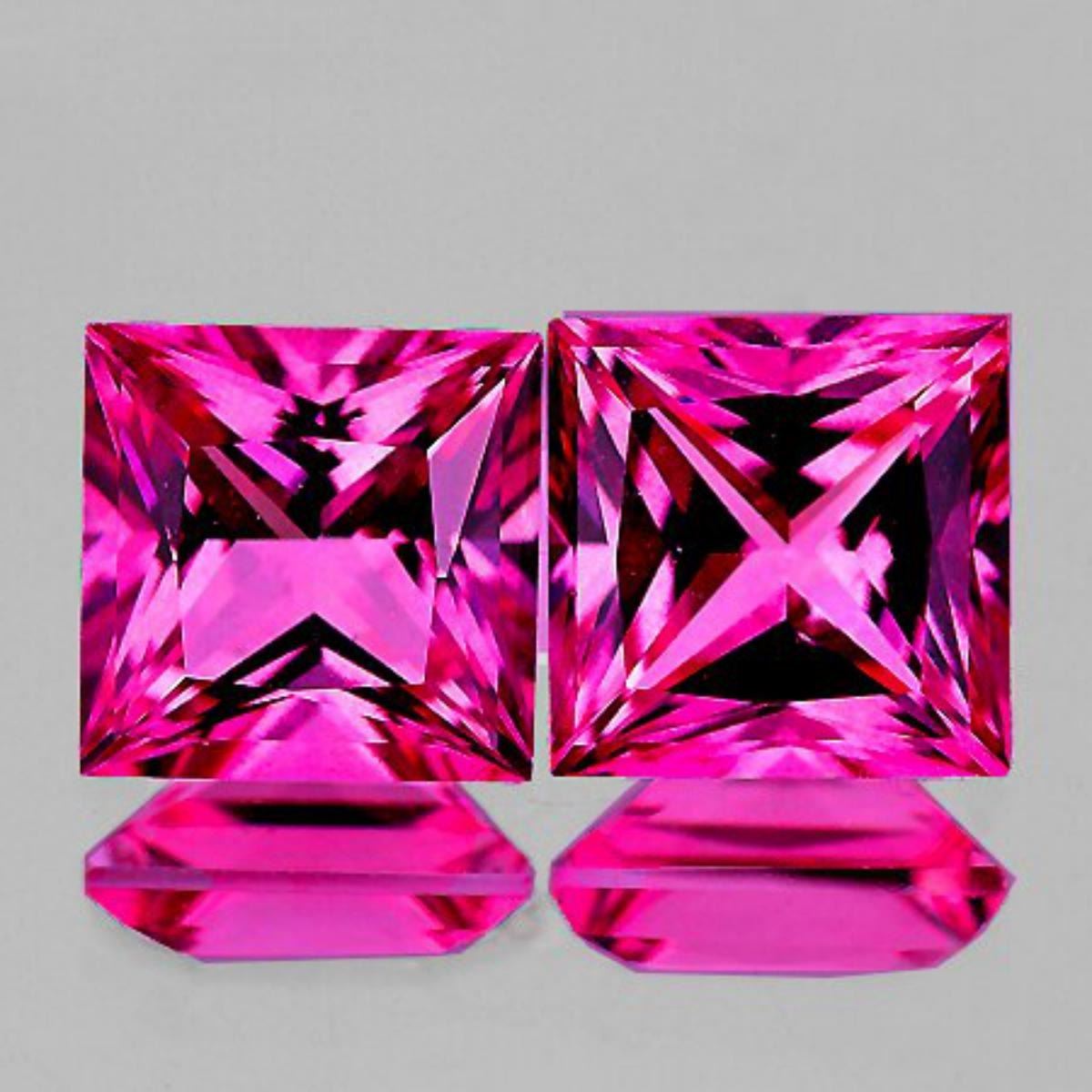 Natural Topaz............. SHAPE : Sqaure (Princess Cut); SIZE ( L x W x D ) : 7.00 mm.; QUANTITY : 2 pieces ( Perfectly Matched Pair ) COLOR : Hot Pink Best AAA Color.; CLARITY : Flawless-VVS1 AAA Grade.; ORIGIN : Brazil.; HARDNESS : 8.; LUSTER : Excellent!!!; TREATMENT : Heated.;