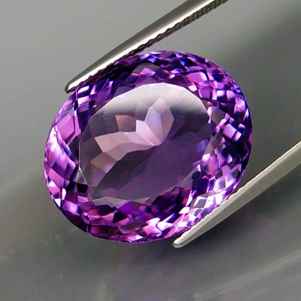 Amethyst SHAPE Oval WEIGHT 16.61 Ct.SIZE 17.5 X 14.7 X 10.4 mm QUANTITY 1 Piece COLOR Purple CLARITY VVS LUSTER Superior ORIGIN Brazil; TREATMENT None HARDNESS 7