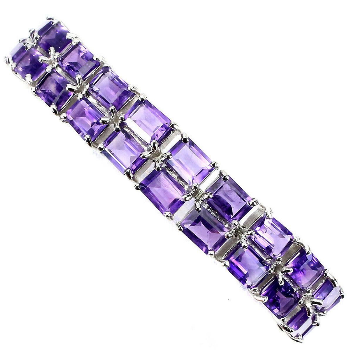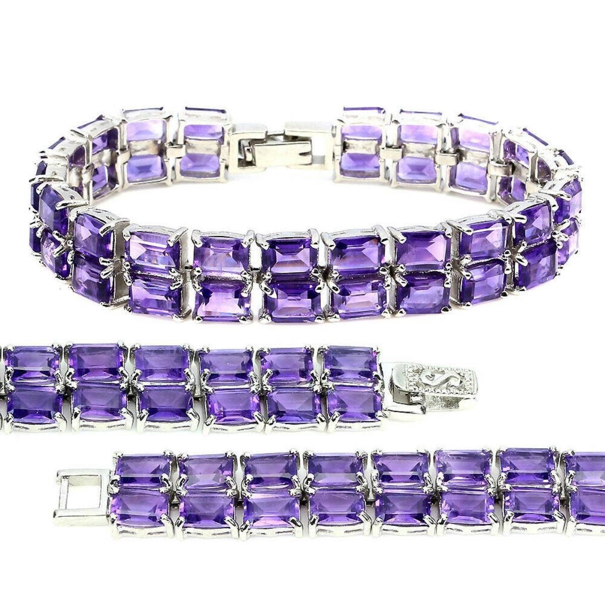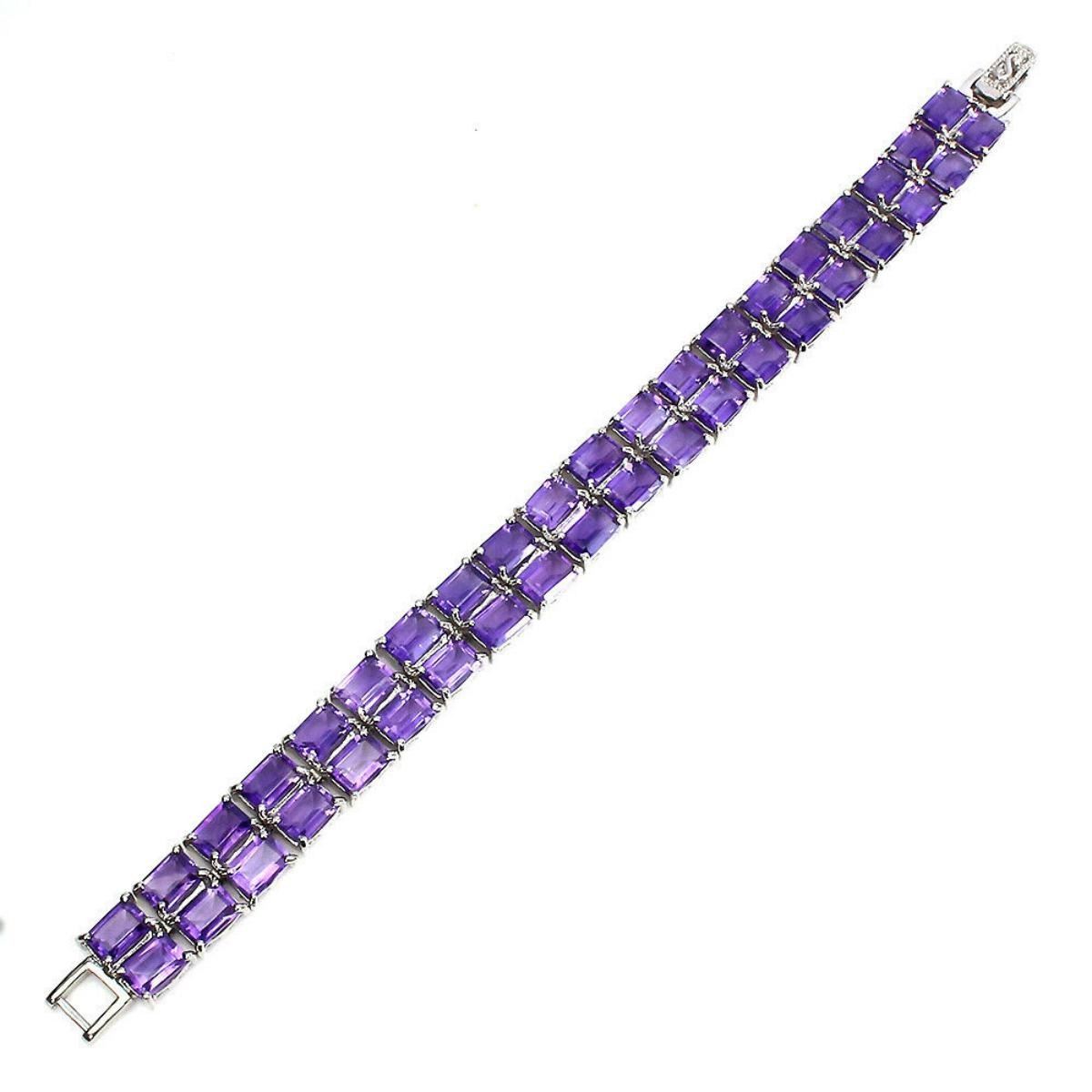 925 STERLING SILVER;PLATE-14K WHITE GOLD;LENGTH (INCHES)7.5;MAIN STONE-AMETHYST;TOTAL WEIGHT-29.2 GRAM (TOTAL WEIGHT OF SILVER + STONE)DIMENSION-* STONE 7.0 X 5.0 MM. * LENGTH 7.5 INCHES.* FACE BRACELET -170.0 X 12.0 MM.;MAIN STONE SHAPE--OCTAGON CUT;MAIN STONE COLOR- PURPLE;CLARITY/GRADE-IF;TREATMENT--UNHEATED;ORIGIN-URUGUAYHARDNESS-7;