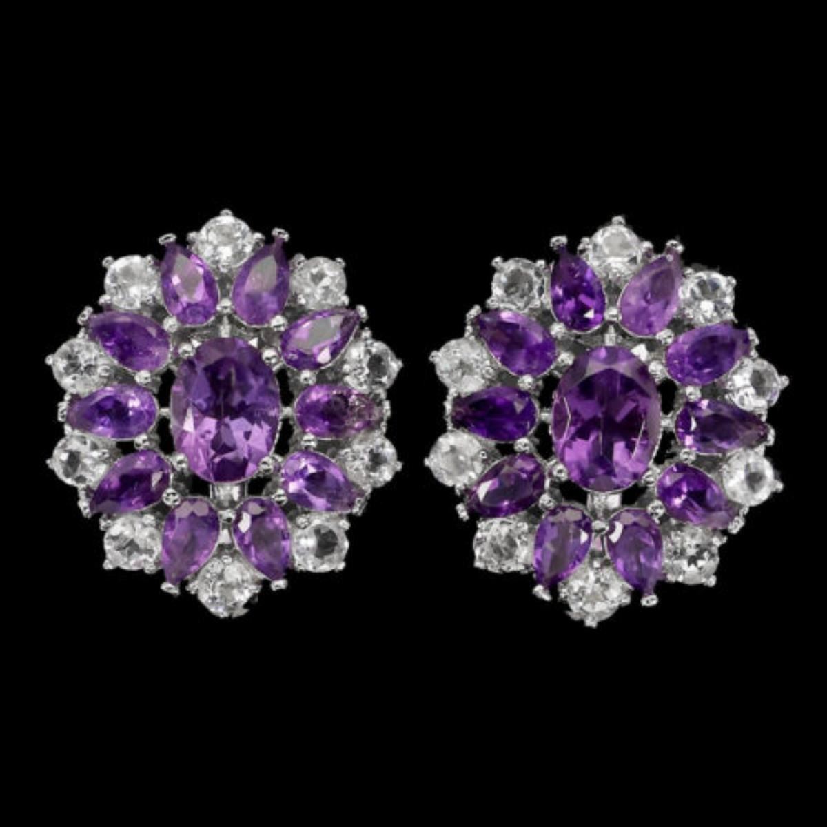 925 STERLING SILVER;PLATE-14K WHITE GOLD;MAIN STONE-AMETHYST;OTHER GEMS-AQUAMARINE;TOTAL WEIGHT-9.18 GRAM (TOTAL WEIGHT OF SILVER + STONE)DIMENSION-* STONE 3.0 TO 8.0 X 6.0 MM. * FACE EARRINGS 23.0 X 20.0 MM.;MAIN STONE SHAPE-OVAL CUT;MAIN STONE COLOR- PURPLE;CLARITY/GRADE-IF TO VVS;TREATMENT-UNHEATED;ORIGIN-BRAZIL;HARDNESS-7;