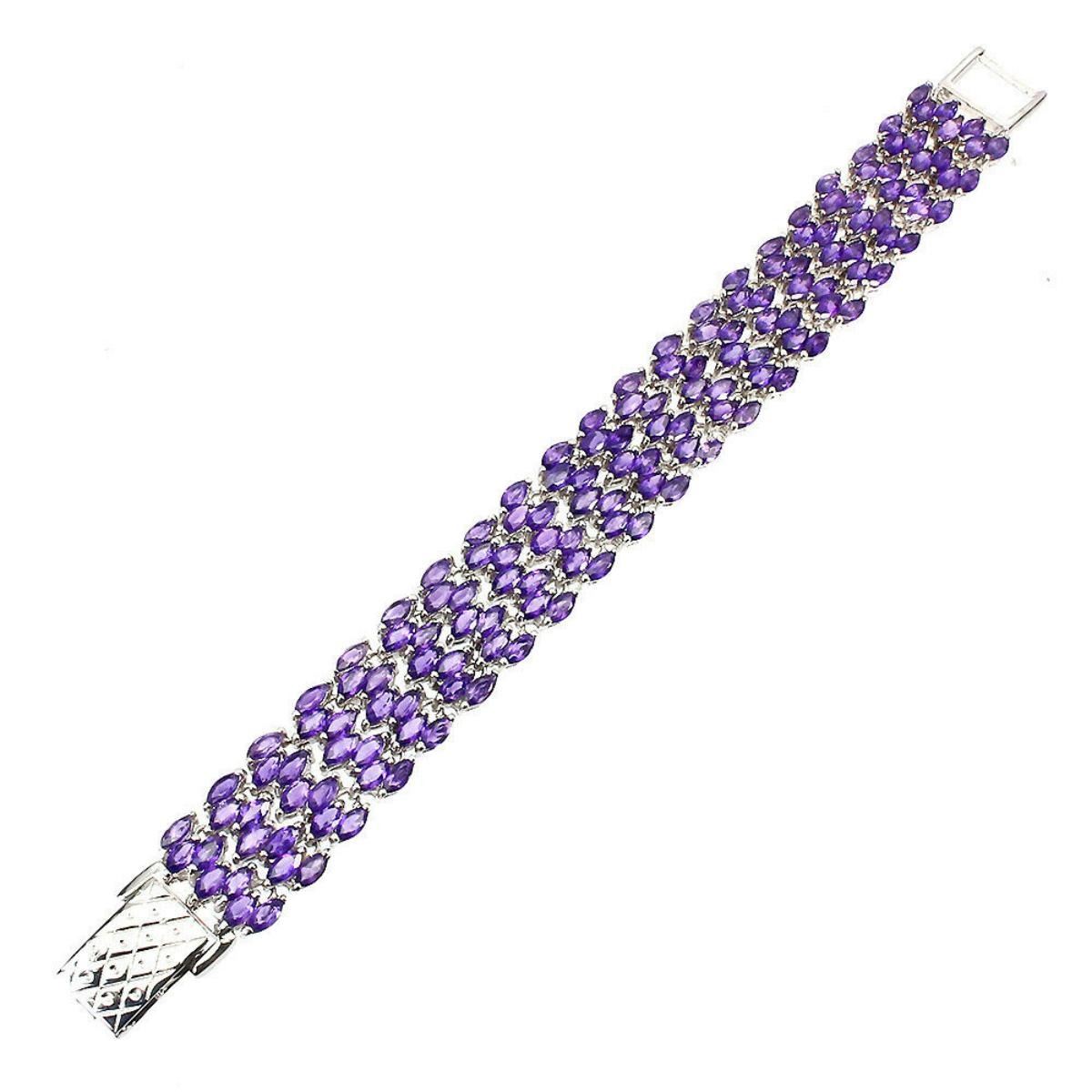 925 STERLING SILVER;PLATE-14K WHITE GOLD;LENGTH (INCHES)-7;MAIN STONE-AMETHYST;TOTAL WEIGHT-33.99 GRAM (TOTAL WEIGHT OF SILVER + STONE);DIMENSION-* STONE 5.0 X 2.5 MM. * LENGTH 7.0 INCHES.* FACE BRACELET 170.0 X 16.0 MM.;MAIN STONE SHAPE-MARQUISE CUT;MAIN STONE COLOR- PURPLE;CLARITY/GRADE-IF TO VVS;TREATMENT-UNHEATED;ORIGIN-URUGUAY;HARDNESS-7;