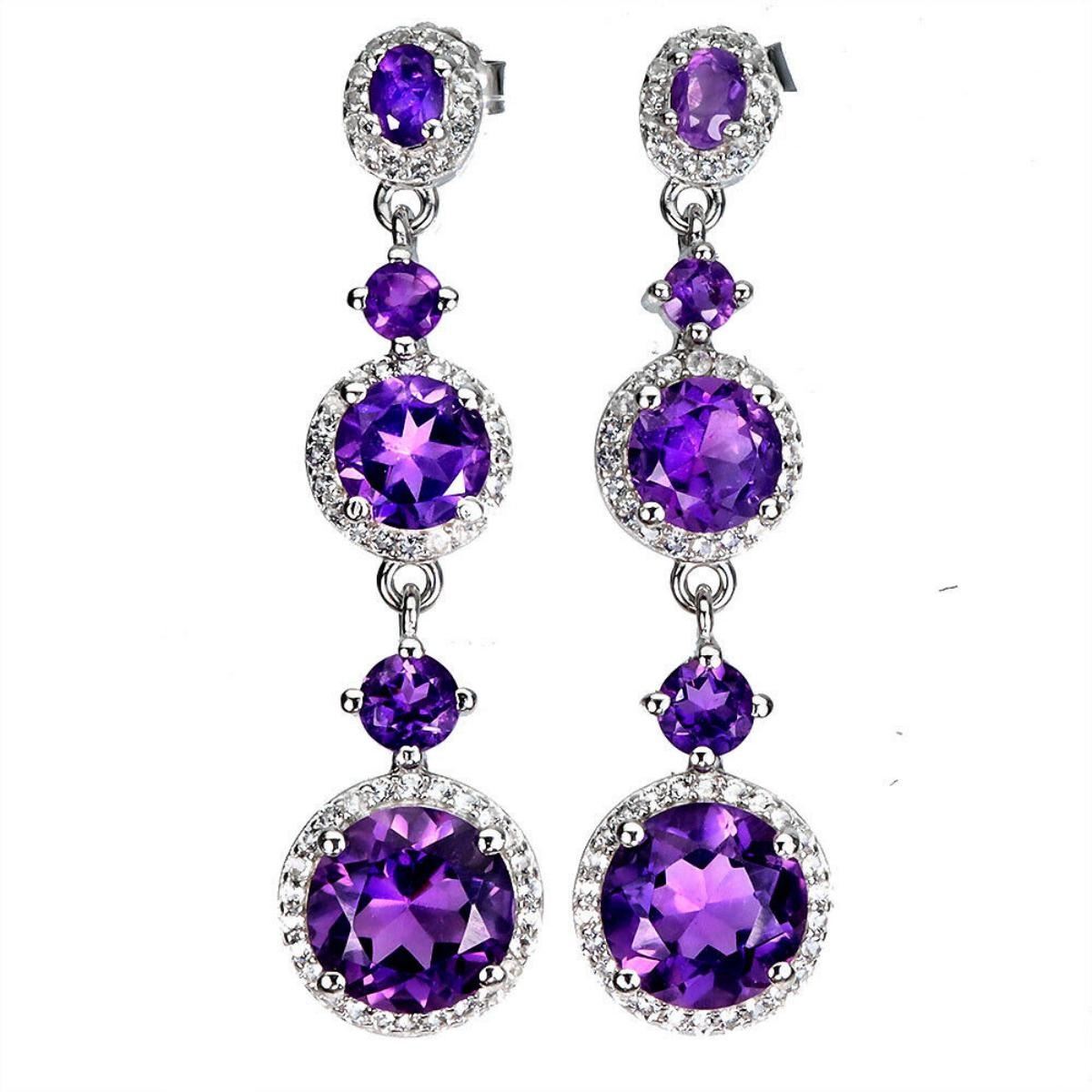 925 STERLING SILVER;PLATE-14K WHITE GOLD;MAIN STONE-AMETHYST;OTHER GEMS-WHITE TOPAZ;TOTAL WEIGHT-5.45 GRAM (TOTAL WEIGHT OF SILVER + STONE)DIMENSION-* STONE 1.0 TO 8.0 MM.;* FACE EARRINGS- 39.0 X 10.0 MM.;MAIN STONE SHAPE-ROUND CUT;MAIN STONE COLOR- RICH PURPLE;CLARITY/GRADE-IF TO VVS;TREATMENT-UNHEATED;ORIGIN-BRAZIL;HARDNESS-7;