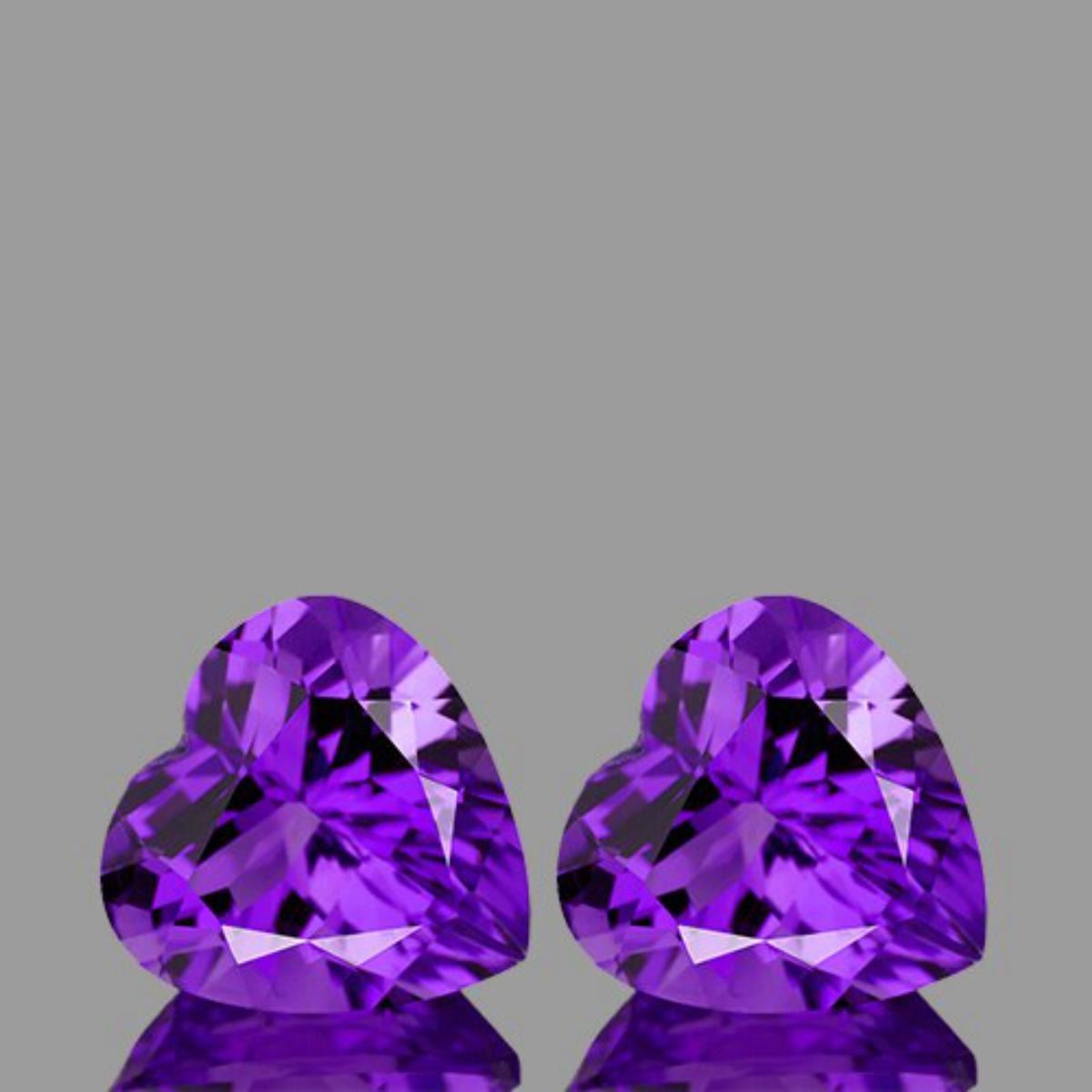 Natural Amethyst; SHAPE : Heart ; SIZE ( L x W x D ) : 12.00 mm; QUANTITY : 2 pieces (Perfctly Matched Pair) COLOR : Purple AAA Color; CLARITY : Flawless-VVS1; ORIGIN : Brazil; HARDNESS : 7: LUSTER : Excellent!!! TREATMENT : 100% Natural Unheated