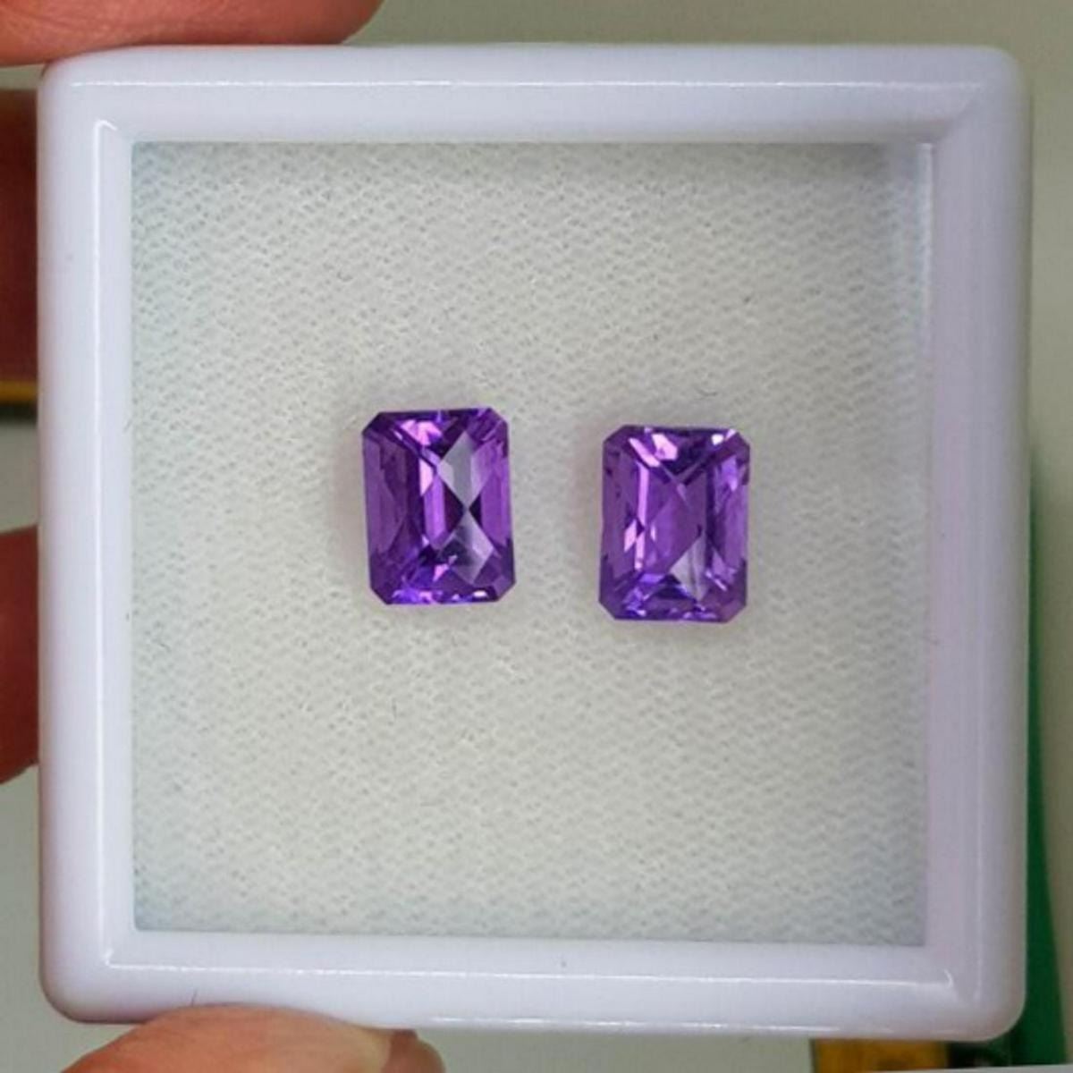 Natural Amethyst; SHAPE : Rectangle Checker; SIZE ( L x W x D ) : 8.00 x 6.00 mm; QUANTITY : 2 pieces (Perfctly Matched Pair) COLOR : Intense Purple; CLARITY : Flawless-VVS1; ORIGIN : Africa; HARDNESS : 7; LUSTER : Excellent!!! TREATMENT : 100% Natural Unheated;