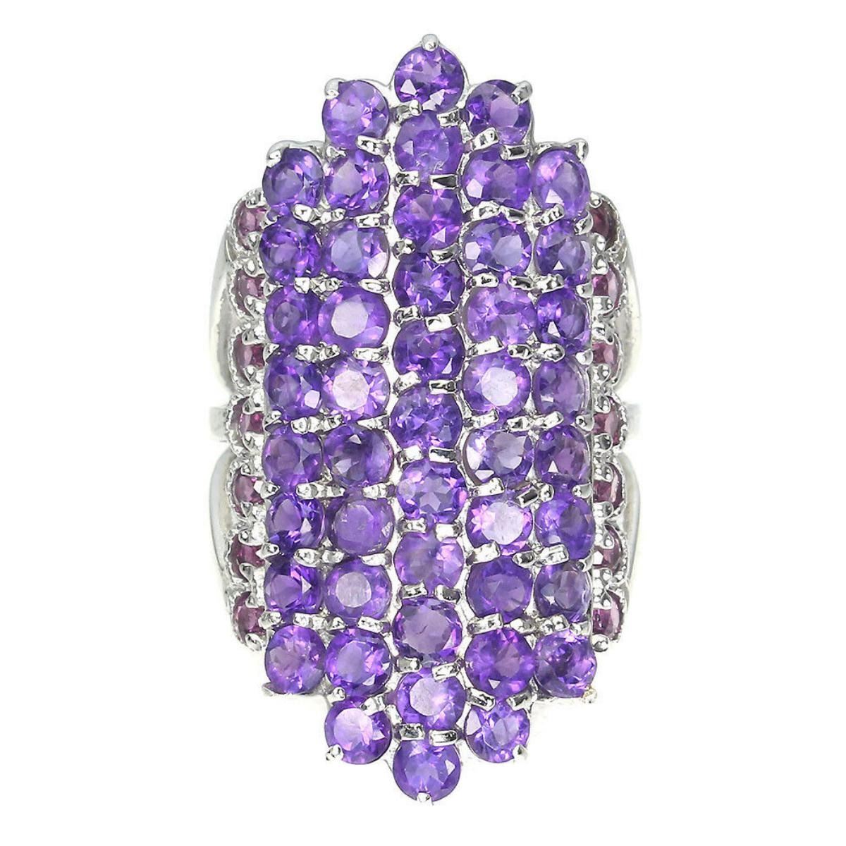 925 STERLING SILVER;PLATE-14K WHITE GOLD;RING SIZE-(resizeable)-7;MAIN STONE-AMETHYST;OTHER GEMS-RHODOLITE GARNET;TOTAL WEIGHT-11.76 GRAM (TOTAL WEIGHT OF SILVER + STONE)DIMENSION-* STONE 2.0 TO 3.0 MM.;* FACE RING- 33.0 X 19.0 MM.;MAIN STONE SHAPE-ROUND CUT;MAIN STONE COLOR- RICH PURPLE;CLARITY/GRADE-IF TO VVS;TREATMENT-UNHEATED ; Origin - URUGUAY;HARDNESS-7;