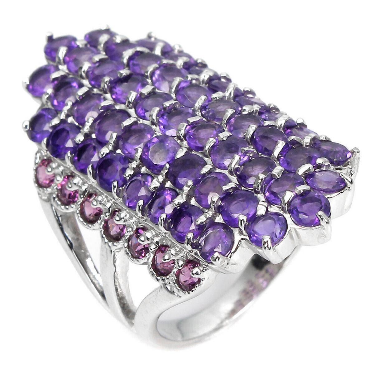 925 STERLING SILVER;PLATE-14K WHITE GOLD;RING SIZE-(resizeable)-7;MAIN STONE-AMETHYST;OTHER GEMS-RHODOLITE GARNET;TOTAL WEIGHT-11.76 GRAM (TOTAL WEIGHT OF SILVER + STONE)DIMENSION-* STONE 2.0 TO 3.0 MM.;* FACE RING- 33.0 X 19.0 MM.;MAIN STONE SHAPE-ROUND CUT;MAIN STONE COLOR- RICH PURPLE;CLARITY/GRADE-IF TO VVS;TREATMENT-UNHEATED ; Origin - URUGUAY;HARDNESS-7;
