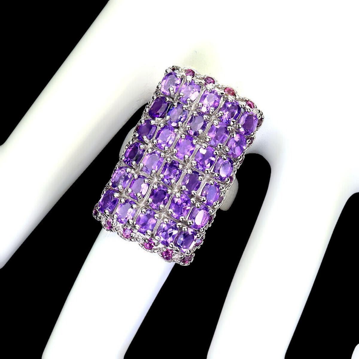 925 STERLING SILVER;PLATE-14K WHITE GOLD;RING SIZE/resizable-8.5;MAIN STONE--AMETHYST;OTHER GEMS-RHODOLITE GARNET;TOTAL WEIGHT-11.3 GRAM (TOTAL WEIGHT OF SILVER + STONE)DIMENSION-* STONE 1.5 TO 4.0 X 3.0 MM.;* FACE RING -30.0 X 18.0 MM;.MAIN STONE SHAPE-OVAL CUT;MAIN STONE COLOR- RICH PURPLE;CLARITY/GRADE-IF TO VVS;TREATMENT-UNHEATED;ORIGIN-BRAZIL;HARDNESS-7;