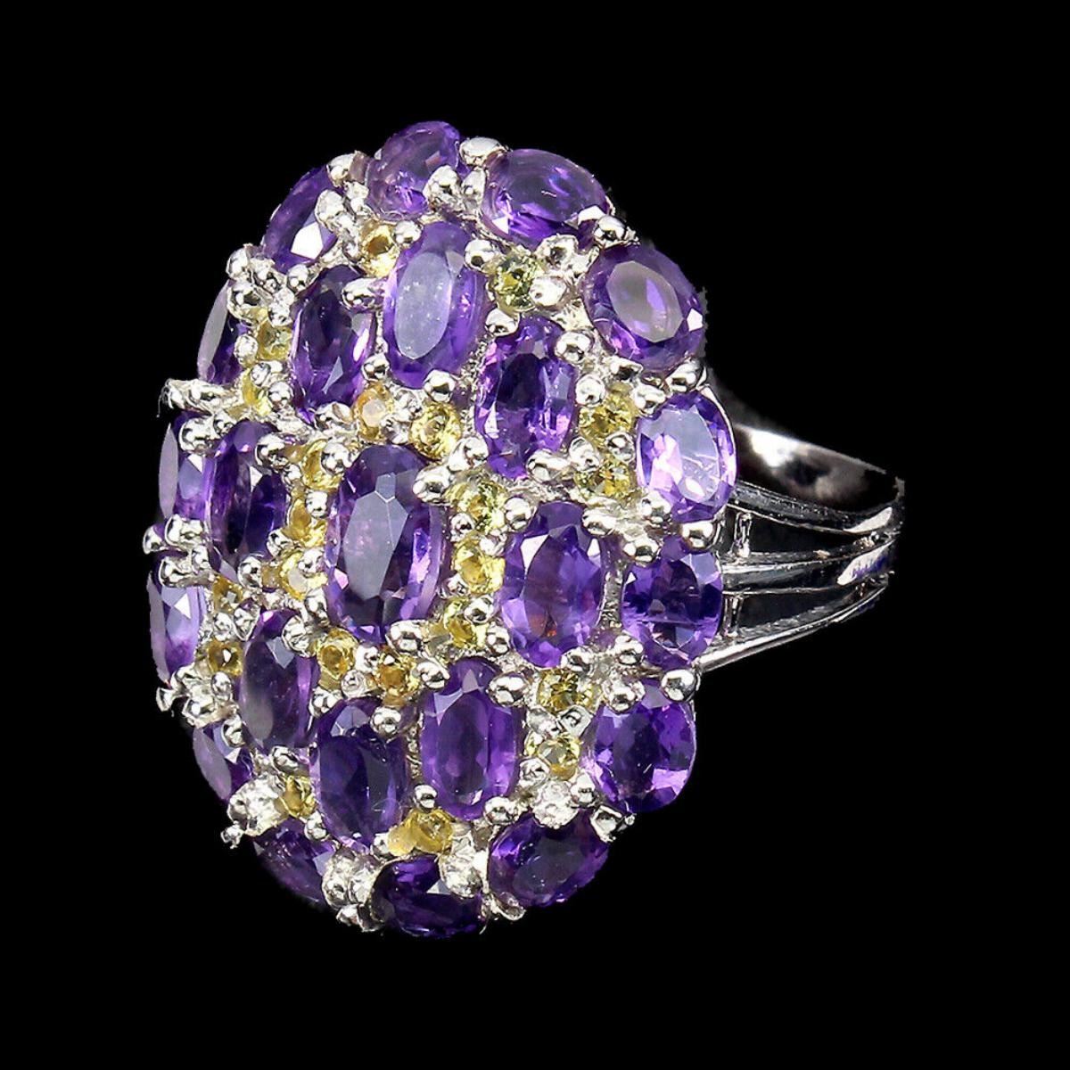 925 STERLING SILVER;PLATE-14K WHITE GOLD;RING SIZE/resizable--8;MAIN STONE-AMETHYST;OTHER GEMS-SAPPHIRE;TOTAL WEIGHT-6.77 GRAM (TOTAL WEIGHT OF SILVER + STONE)DIMENSION-* STONE 1.5 TO 6.0 X 4.0 MM.;* FACE RING- 25.0 -OVAL CUT;MAIN STONE COLOR- RICH PURPLE;CLARITY/GRADE-IF TO VVS;TREATMENT-UNHEATED;ORIGIN-URUGUAY;HARDNESS-7;