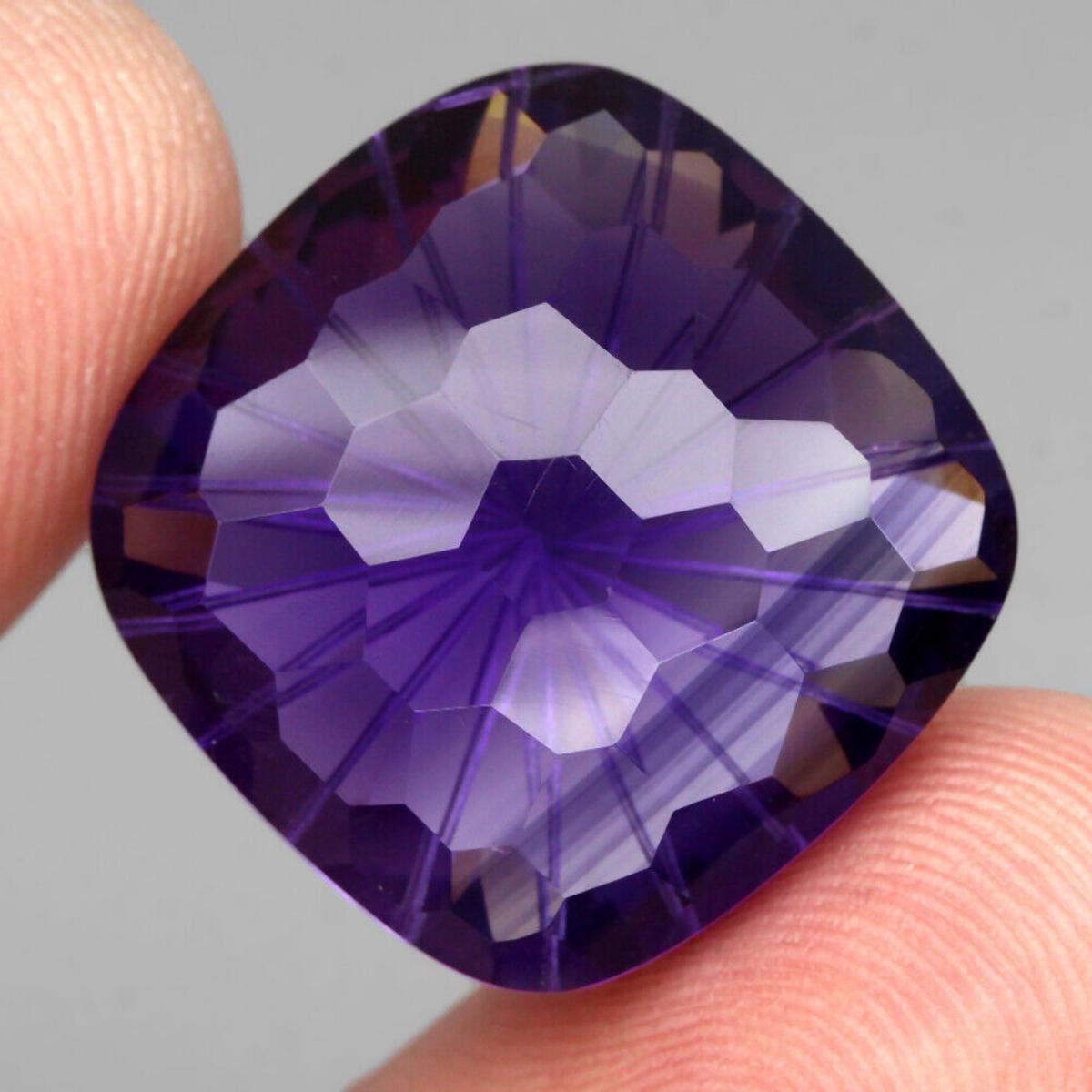 MAIN STONE-AMETHYST;TOTAL WEIGHT-31.9 CT;DIMENSION-21.0 X 21.0 X 12.0 MM.;MAIN STONE SHAPE-CUSHION ;MAIN STONE COLOR- PURPLE;CLARITY/GRADE-IF;TREATMENT-UNHEATED;ORIGIN-URUGUAY;HARDNESS-7;