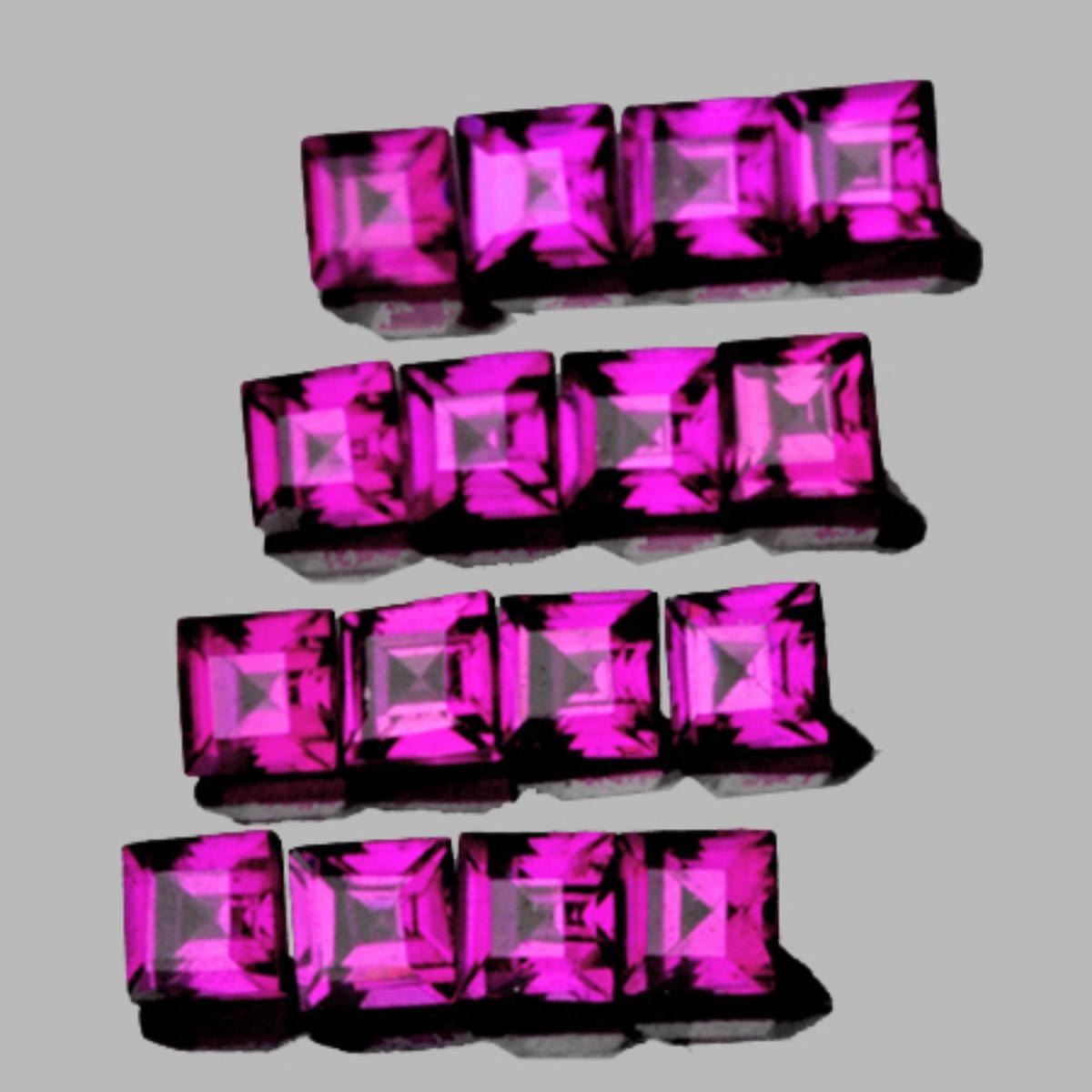 Natural Rhodolite Garnet; WEIGHT : 2.95 cts; SHAPE : Square; SIZE ( L x W x D ) : 2.50 mm; QUANTITY : 25 pieces ( Perfectly Matched Set) COLOR : Purple AAA Color; CLARITY : Flawless-VVS AAA Grade; ORIGIN : Umba Valley, Tanzania; HARDNESS : 7; LUSTER : AAA Fire!!! TREATMENT : 100% Natural Unheated;