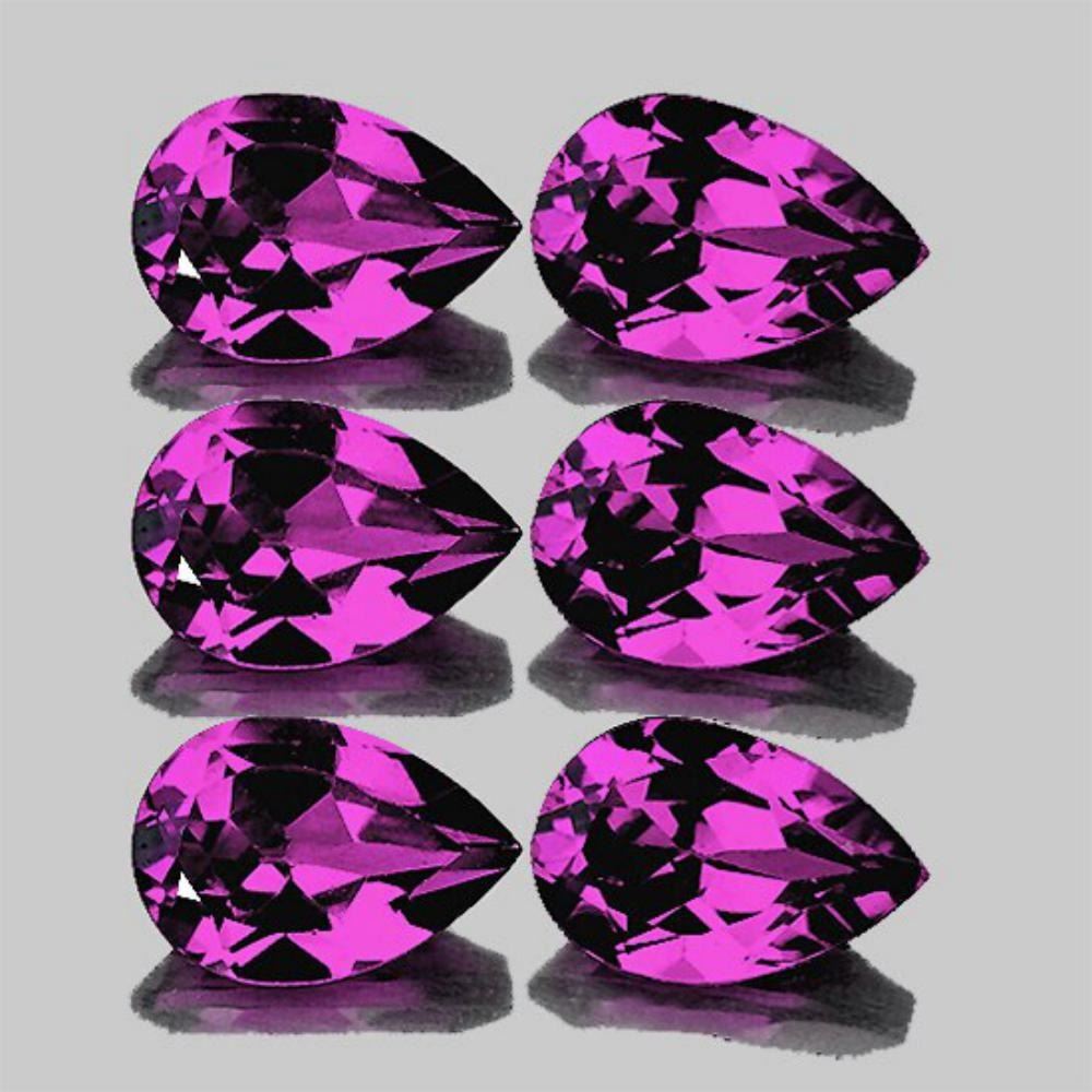 Natural Rhodolite Garnet; SHAPE : Pear; SIZE ( L x W x D ) : 6.00 x 4.00 mm; QUANTITY : 6 pieces ( Perfectly Matched Set) COLOR : Magenta Purple; CLARITY : Flawless-VVS AAA Grade; ORIGIN : Umba Valley, Tanzania; HARDNESS : 7; LUSTER : Excellent!!! TREATMENT : 100% Natural Unheated;