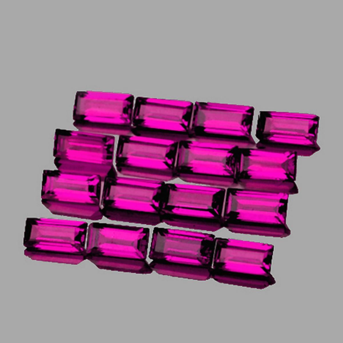 Natural RhodoliteSIZE ( L x W x D ) : 4 x 2 mm;COLOR : Purple AAA Color ; SHAPE : Baguette;QUANTITY : 16 pieces;LUSTER : Excellent;CLARITY : Flawless-VVSHARDNESS : 6-7;ORIGIN : Umba Valley, Tanzania; TREATMENT : 100% Natural Unheated;