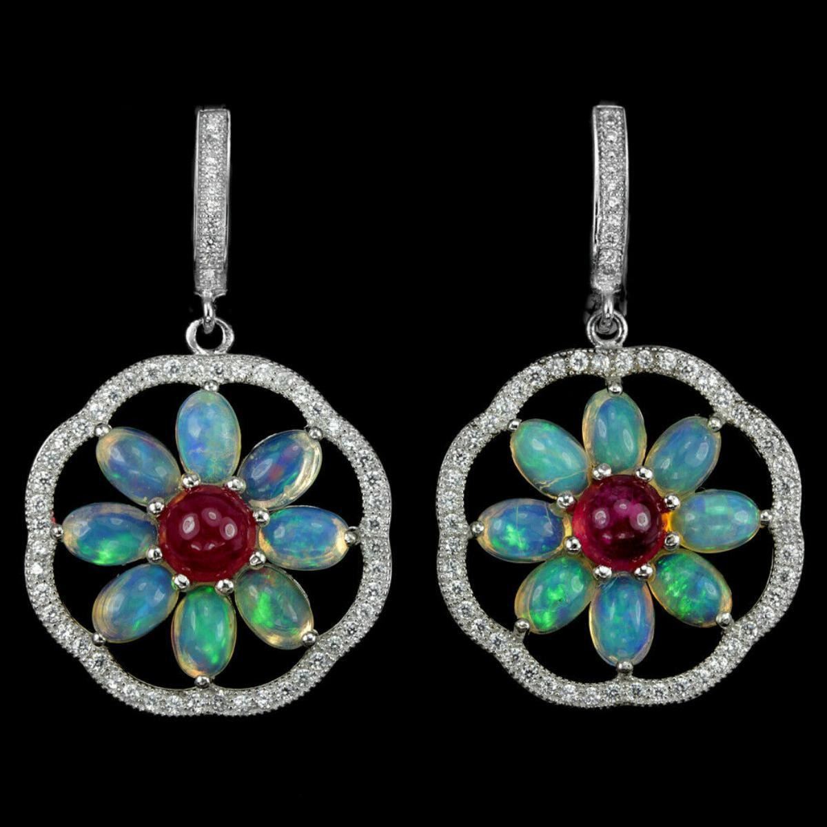 MAIN STONE SIZE:6 X 4 MM.;Style:Drop/Dangle;size 39.24 MM Theme:Flowers & PlantsMain Stone Treatment:Not Enhanced;Secondary Stone:Ruby, Cubic Zirconia Metal Purity: STERLING SILVER;Natural Total Carat Weight (TCW):51.5 Metal:Sterling Silver;Main Stone Shape:Cabochon;