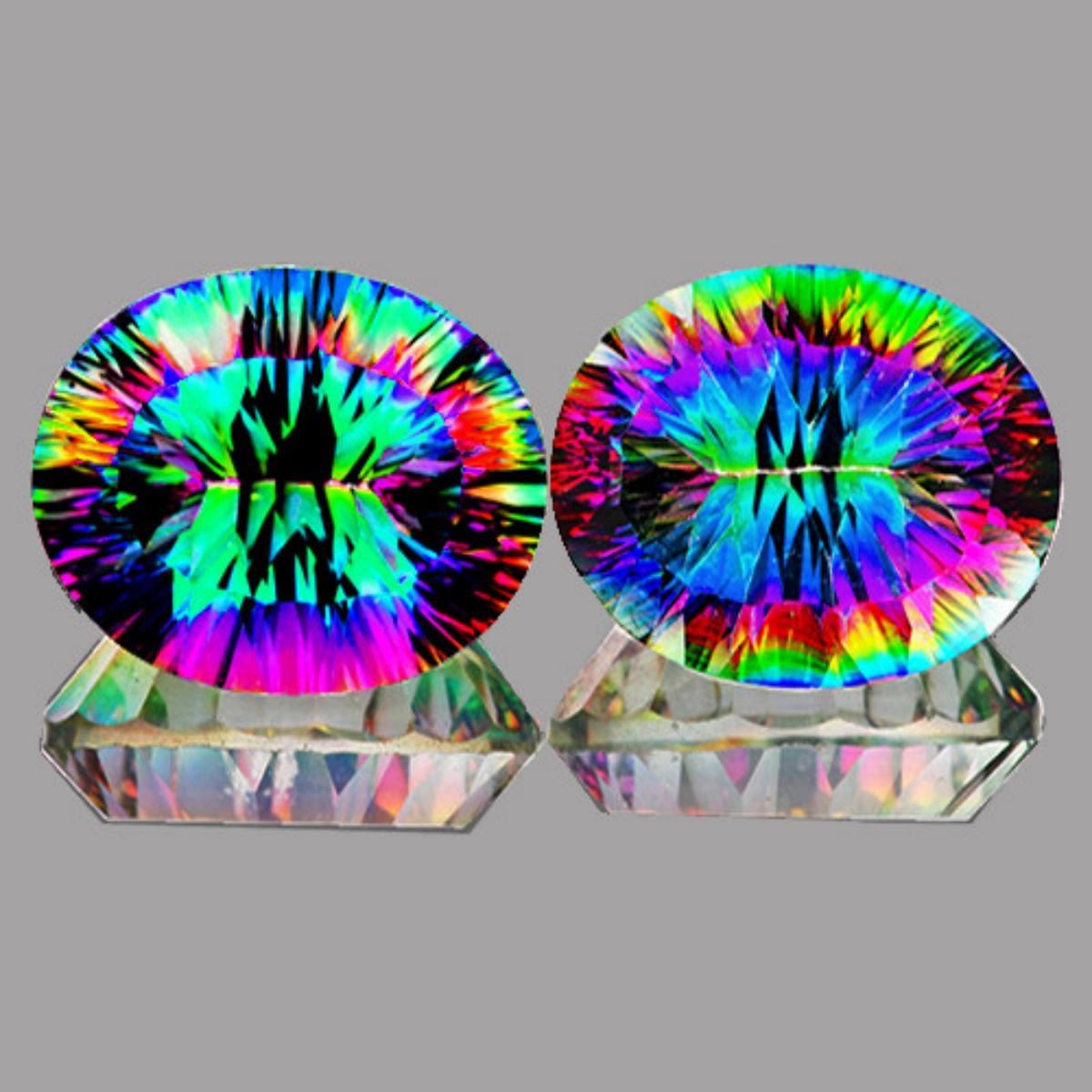 Natural Quartz; SHAPE : Oval (Concave Cut) SIZE ( L x W x D ) : 11.00 x 9.00 mm; QUANTITY : 2 pieces (Perfect Matching Pair) COLOR : Rainbow Mystic AAA Color; CLARITY : Flawless-VVS ; AAA Grade; ORIGIN : Brazil; HARDNESS : 7; LUSTER : AAA Fire!!! TREATMENT : Treated;