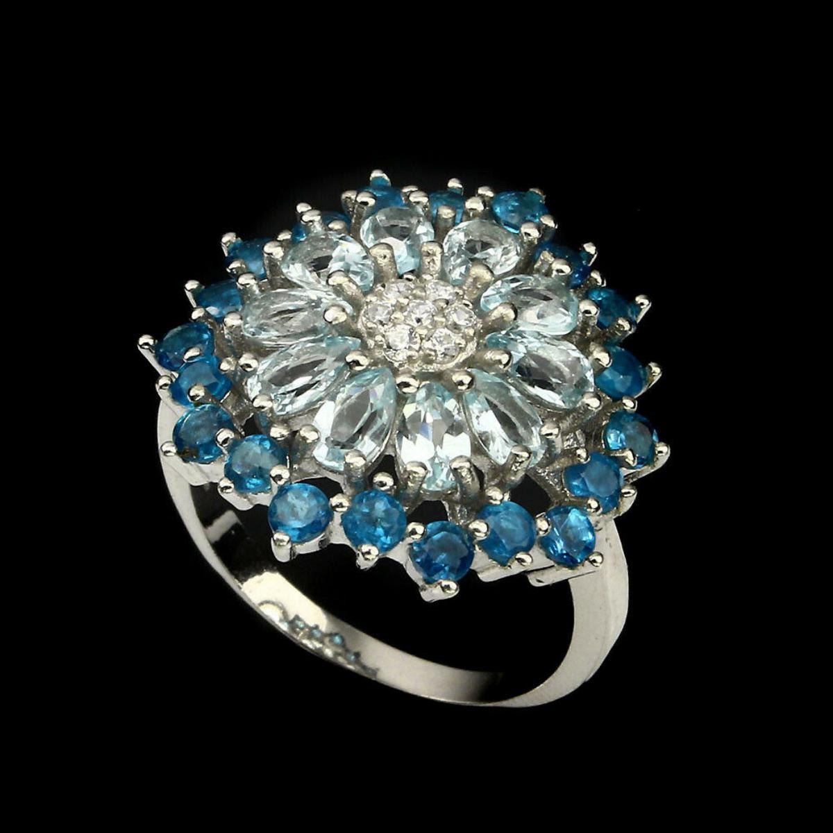 925 STERLING SILVER;PLATE.....14K WHITE GOLD;RING SIZE-8.5(resizeable)MAIN STONE-AQUAMARINE;OTHER GEMS-APATITE,CUBIC ZIRCONIA;TOTAL WEIGHT8.5 CT (TOTAL WEIGHT OF SILVER + STONE)DIMENSION* STONE 3.0 TO 5.0 X 3.0 MM. * CZ 1.5 MM. * FACE RING 23.0 X 23.0 MM.;MAIN STONE SHAPE-PEAR CUT;MAIN STONE COLOR-BRIGHT BLUE;CLARITY/GRADEIF TO VVS;LUSTERGORGEOUS;TREATMENTUNHEATED;ORIGINSANTA - MARIA;HARDNESS5.0 - 8.0