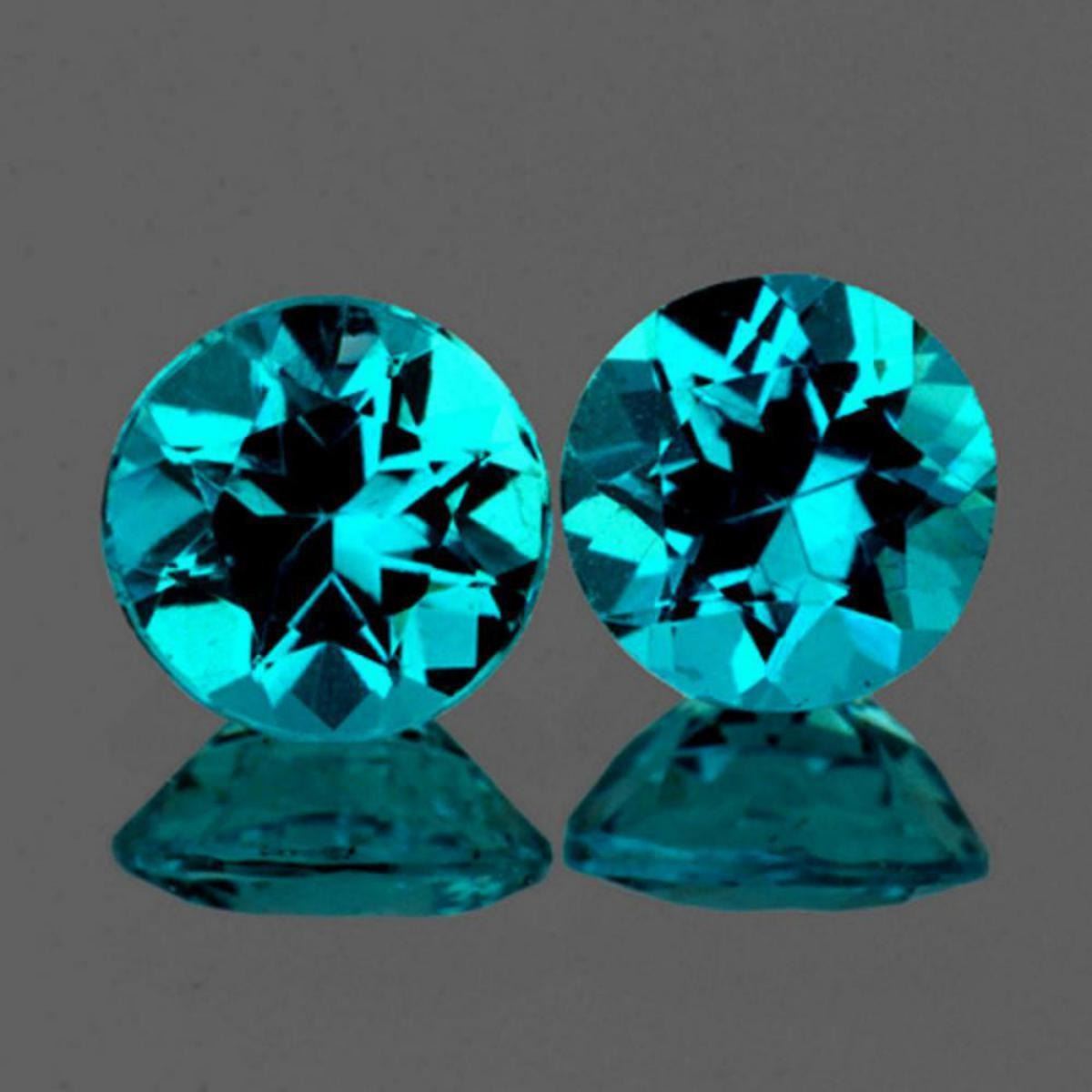 Natural Apatite.... WEIGHT : 2.06 cts; SHAPE : Round SIZE ( L x W x D ) : 6.50 mm; QUANTITY : 2 pieces (Perfectly Match Pair); COLOR : Paraiba Blue AAA Color; CLARITY : Flawless-VVS1; ORIGIN : Brazil; HARDNESS : 5; LUSTER : Excellent!!! TREATMENT : 100% Natural Unheated;