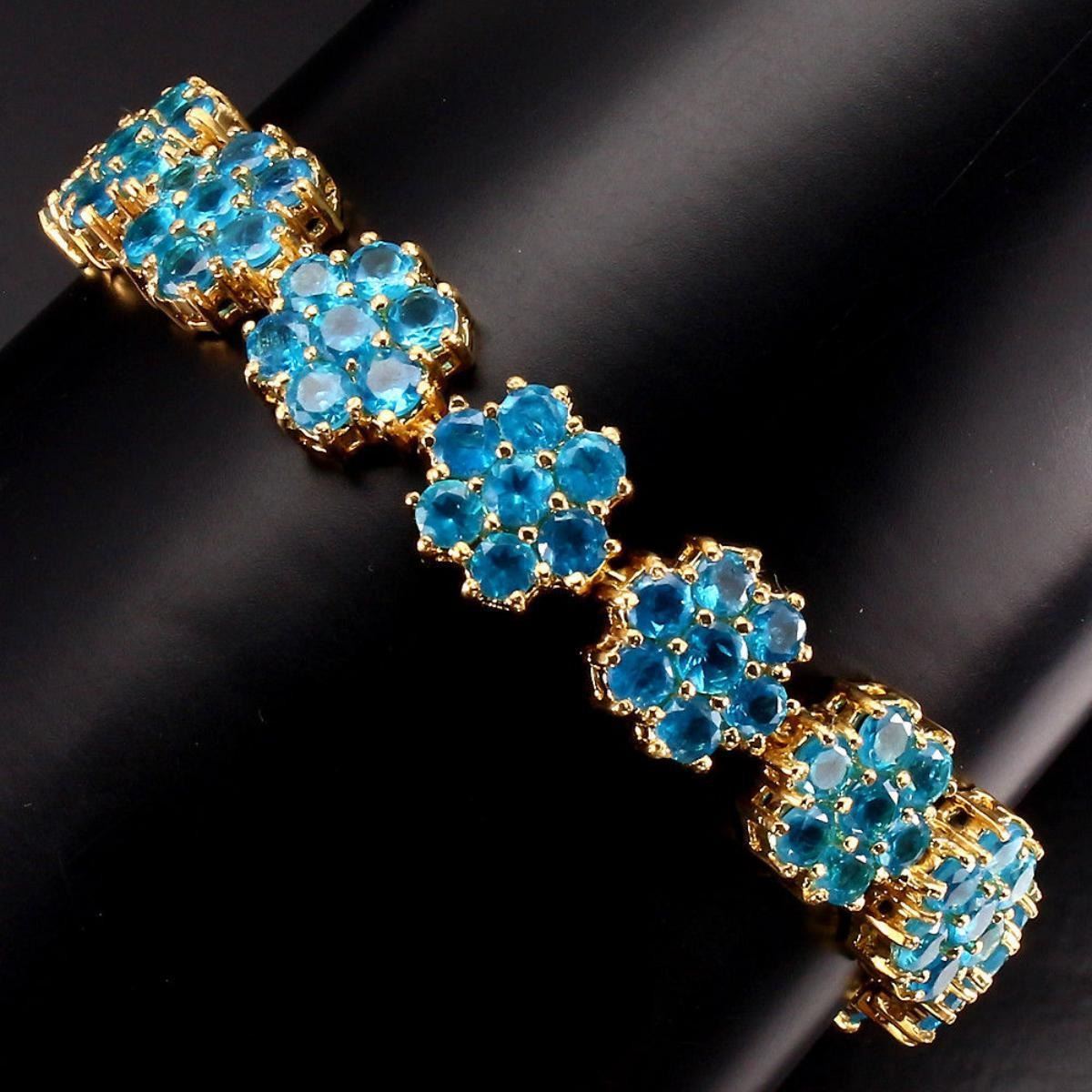 925 STERLING SILVERPLATE14K YELLOW GOLDLENGTH (INCHES)8.5MAIN STONEAPATITEOTHER GEMSTOTAL WEIGHT123.43 CT (TOTAL WEIGHT OF SILVER + STONE)DIMENSION* STONE 4.0 MM. * FACE BRACELET 170.0 X 12.0 MM.MAIN STONE SHAPEROUND CUTMAIN STONE COLORAAA NEON BLUECLARITY/GRADEIF TO VVSLUSTERMESMERIZINGORIGINBrazilHARDNESS5.0