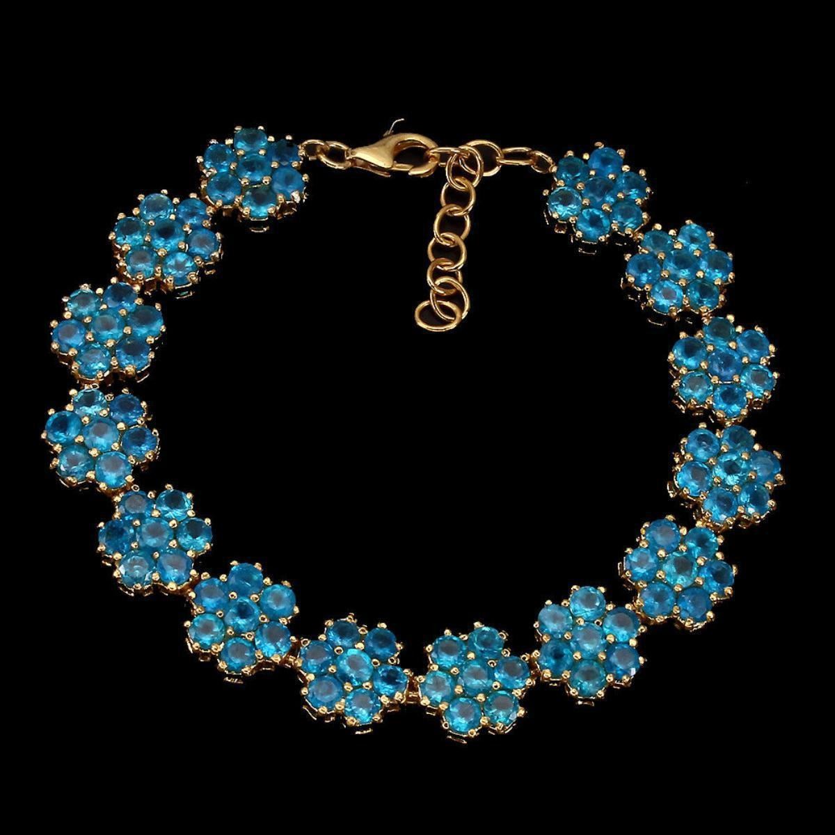 925 STERLING SILVERPLATE14K YELLOW GOLDLENGTH (INCHES)8.5MAIN STONEAPATITEOTHER GEMSTOTAL WEIGHT123.43 CT (TOTAL WEIGHT OF SILVER + STONE)DIMENSION* STONE 4.0 MM. * FACE BRACELET 170.0 X 12.0 MM.MAIN STONE SHAPEROUND CUTMAIN STONE COLORAAA NEON BLUECLARITY/GRADEIF TO VVSLUSTERMESMERIZINGORIGINBrazilHARDNESS5.0