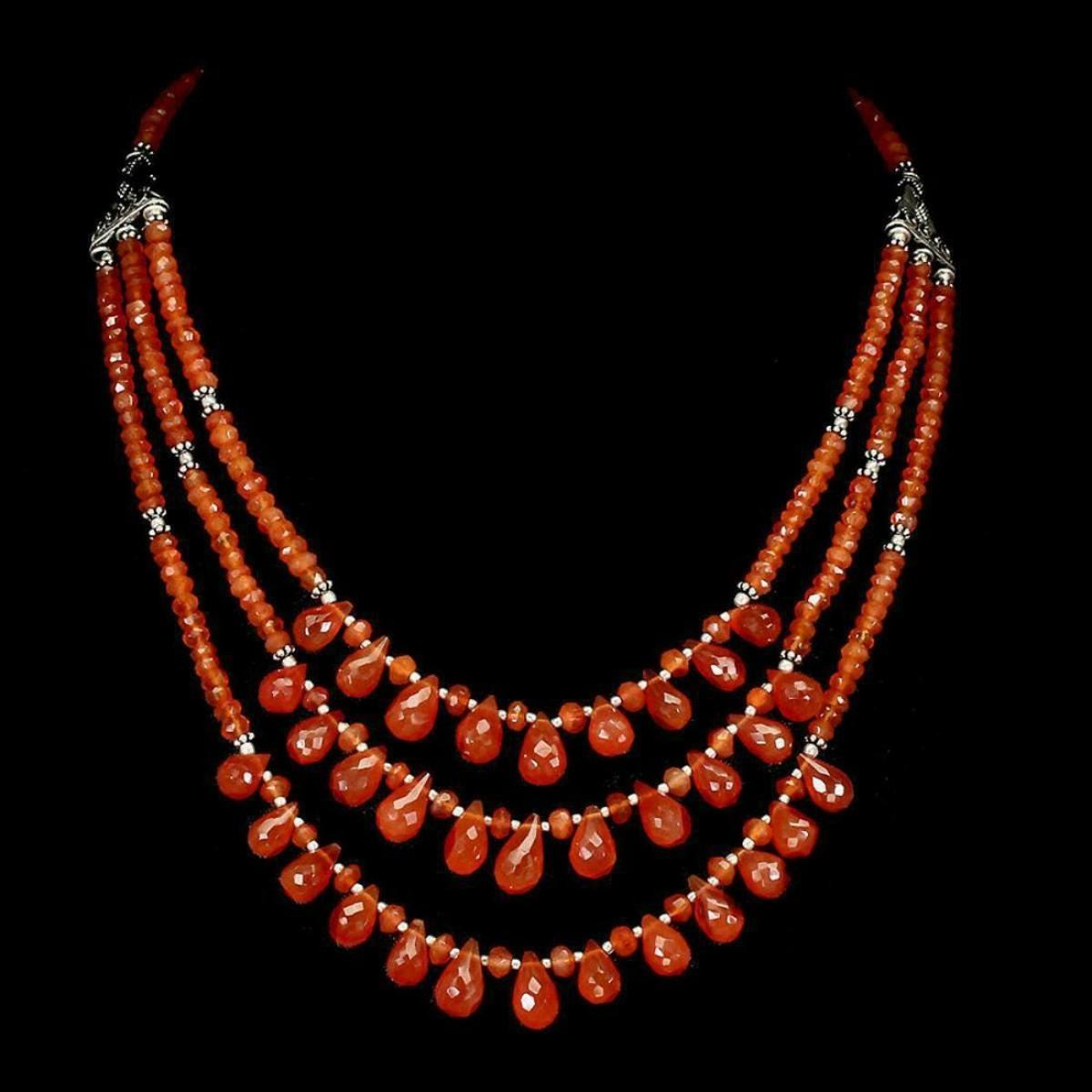 TYPE OF METAL-925 STERLING SILVER;PLATE-14K WHITE GOLD;LENGTH (INCHES)18;MAIN STONE-CARNELIAN;TOTAL WEIGHT-216 Carats (TOTAL WEIGHT OF SILVER + STONE)DIMENSION* STONE 4.0 TO 12.0 X 7.0 MM. * STONES PART LENGTH 405.0 X 43.0 MM.;MAIN STONE SHAPE-BRIOLETTE CUT;MAIN STONE COLOR-TOP RICH ORANGE;TREATMENT-UNHEATED;ORIGIN-BRAZIL;HARDNESS-6.5 - 7.0;