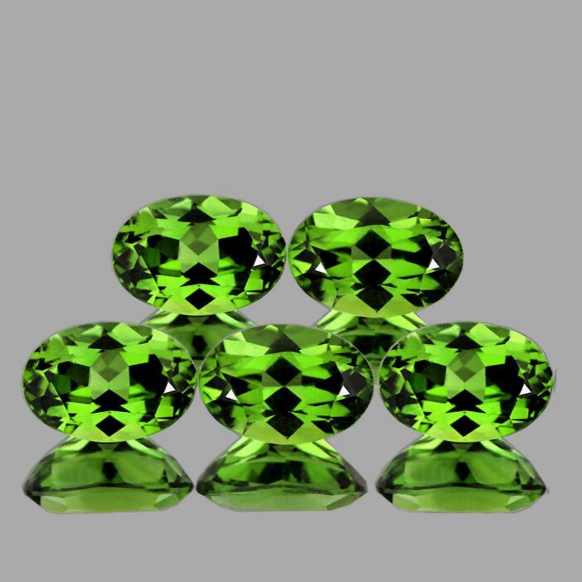 Natural Apatite ; SHAPE : Oval SIZE ( L x W x D ) : 6.00 x 4.00 mm; QUANTITY : 5 pieces (Perfect Matching Set) COLOR : Chrome Green ; CLARITY : Flawless-VVS; ORIGIN : Madagascar; HARDNESS : 5; LUSTER : Brilliant Luster!!! TREATMENT : 100% Natural Unheated;