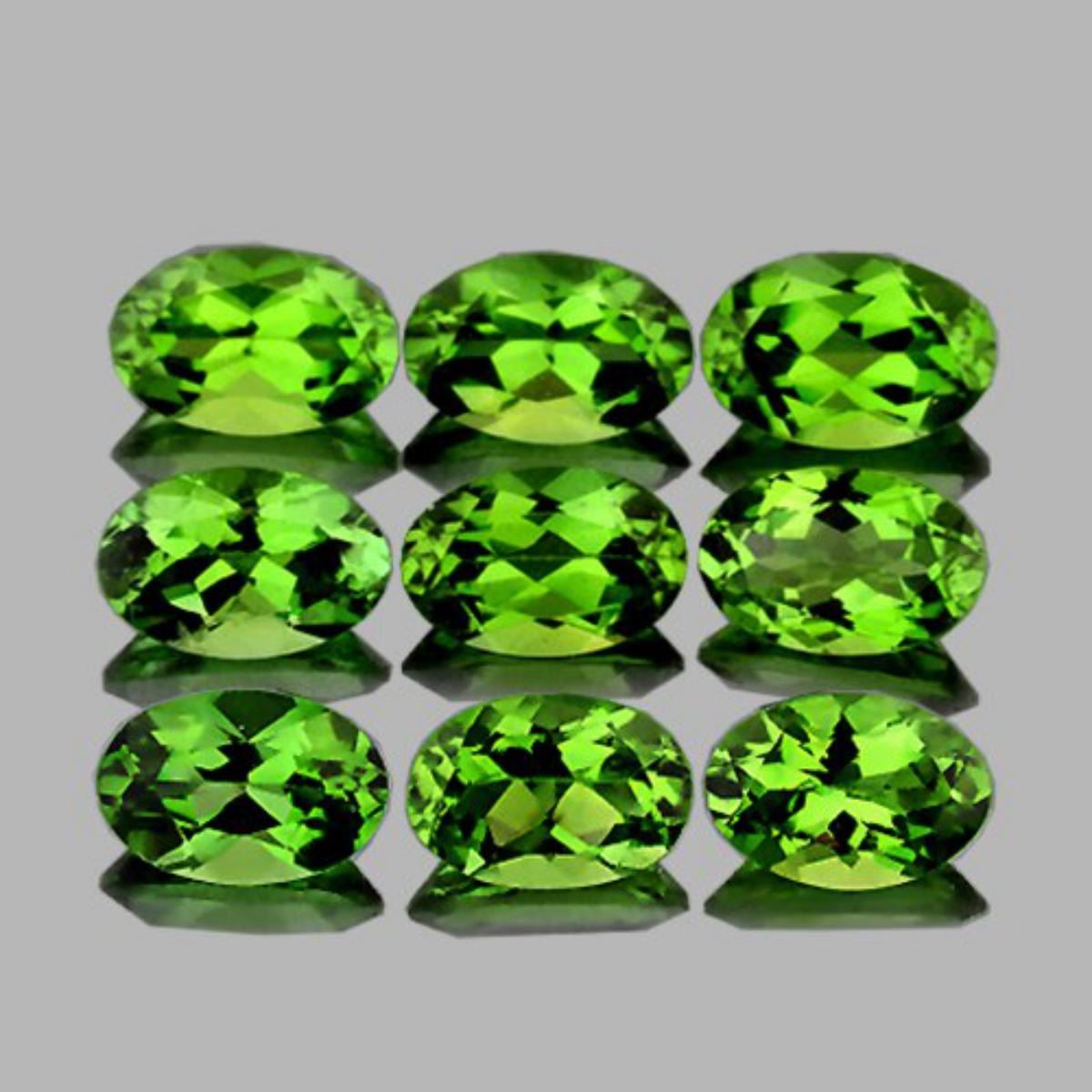 Natural Apatite; SHAPE : Oval; SIZE ( L x W x D ) : 5.00 x 3.00 mm; QUANTITY : 9 pieces (Perfect Matching Set) COLOR : Chrome Green ; CLARITY : Flawless-VVS; ORIGIN : Madagascar; HARDNESS : 5; LUSTER : Brilliant Luster!!! TREATMENT : 100% Natural Unheated;