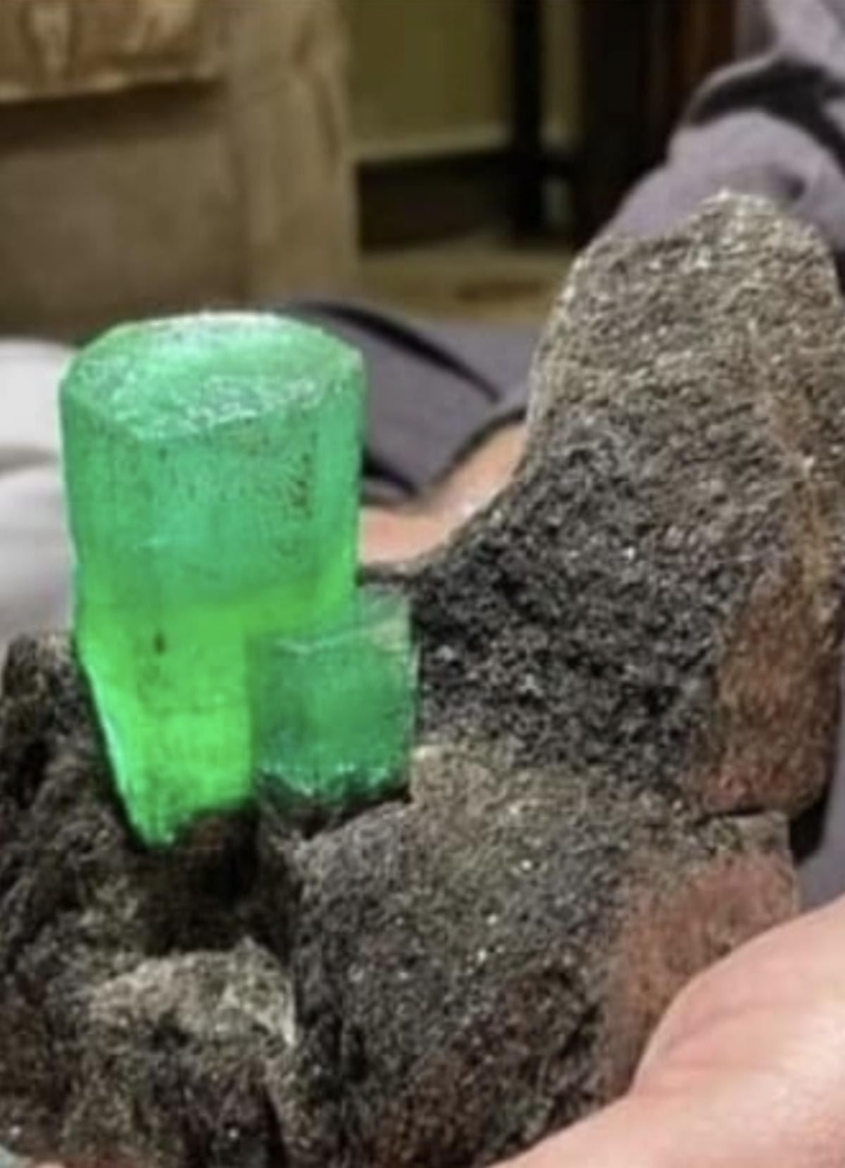 Natural Rare Emerald Specimen......Total weight 1200 Grams; Specimen Dimensions - 140x120x60 MM; Main Emerald Crystal - 63.4x 36x32 MM; 2nd Emerald Crystal 26x28x22 MM; Origin - Swat Valley;