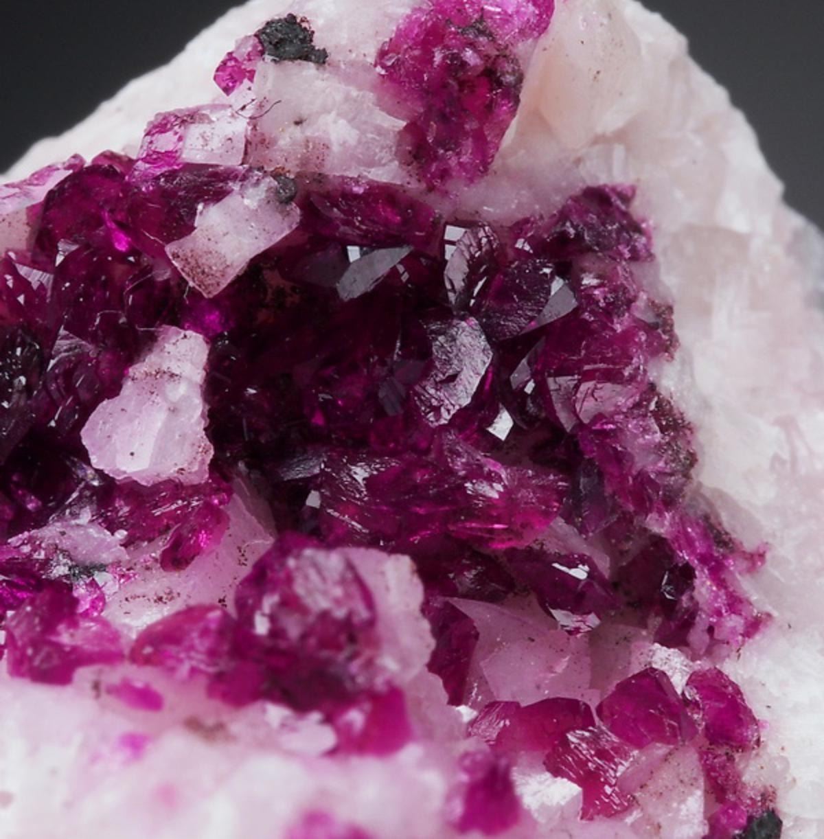 ROSELITEAghbar mine, Bou Azer, Ouarzazate Province, MoroccoSpecimen of lustrous roselite crystals in intensive violet/pourple colour on white dolomite matrix !!!Great colours !!!RARE !!____________________size: 3.8 x 3.5 x 2.2 cmweight: 33 g