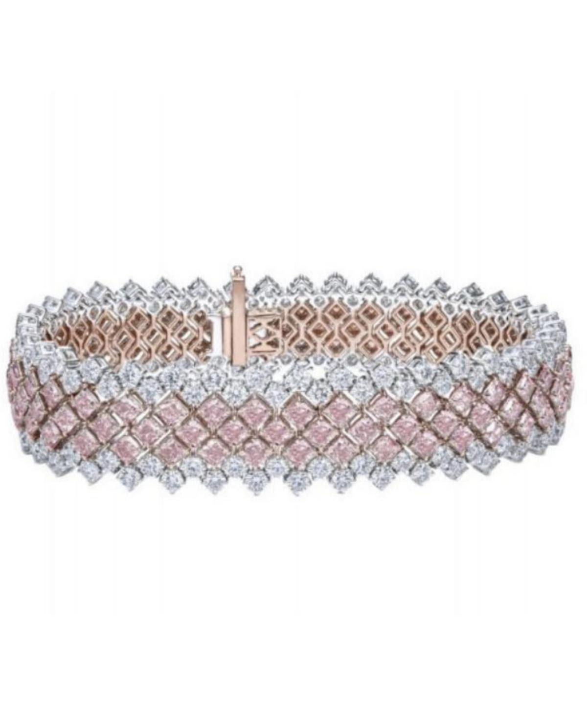 Natural Rare Pink & White Diamond Bracelet.....Gross Weight 42.65 Grams....Natural completely untreated Pink diamonds 10.793 Cts....117 Pcs; White Diamonds VVS/E-F colour 8.027 Carats.....156 Pcs; 18k Solid Gold.....Pink diamonds are more like Rare Padparadsha color which is rare color to find in diamonds.