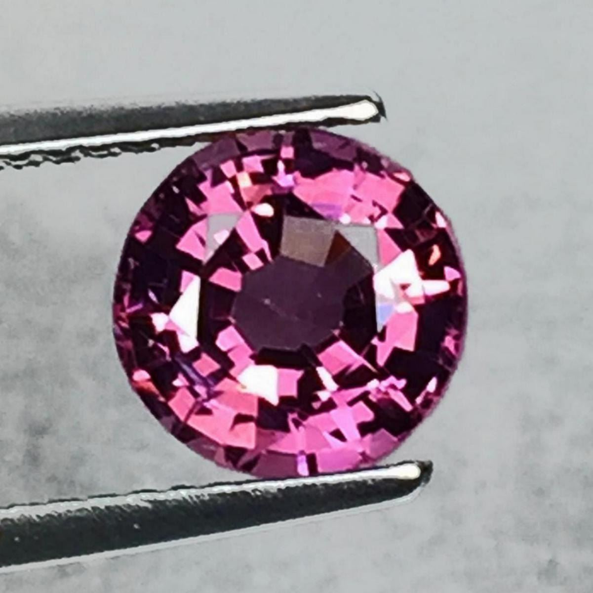 Natural Spinel... WEIGHT : 1.42 cts; SHAPE : Round ; SIZE ( L x W x D ) : 7.02 x 4.13 mm QUANTITY : 1 piece; COLOR : Raspberry Pink; CLARITY : VVS AAA Grade; ORIGIN : Mogok, Burma; HARDNESS : 8.5; LUSTER : Excellent!! TREATMENT : 100% Natural Unheated;