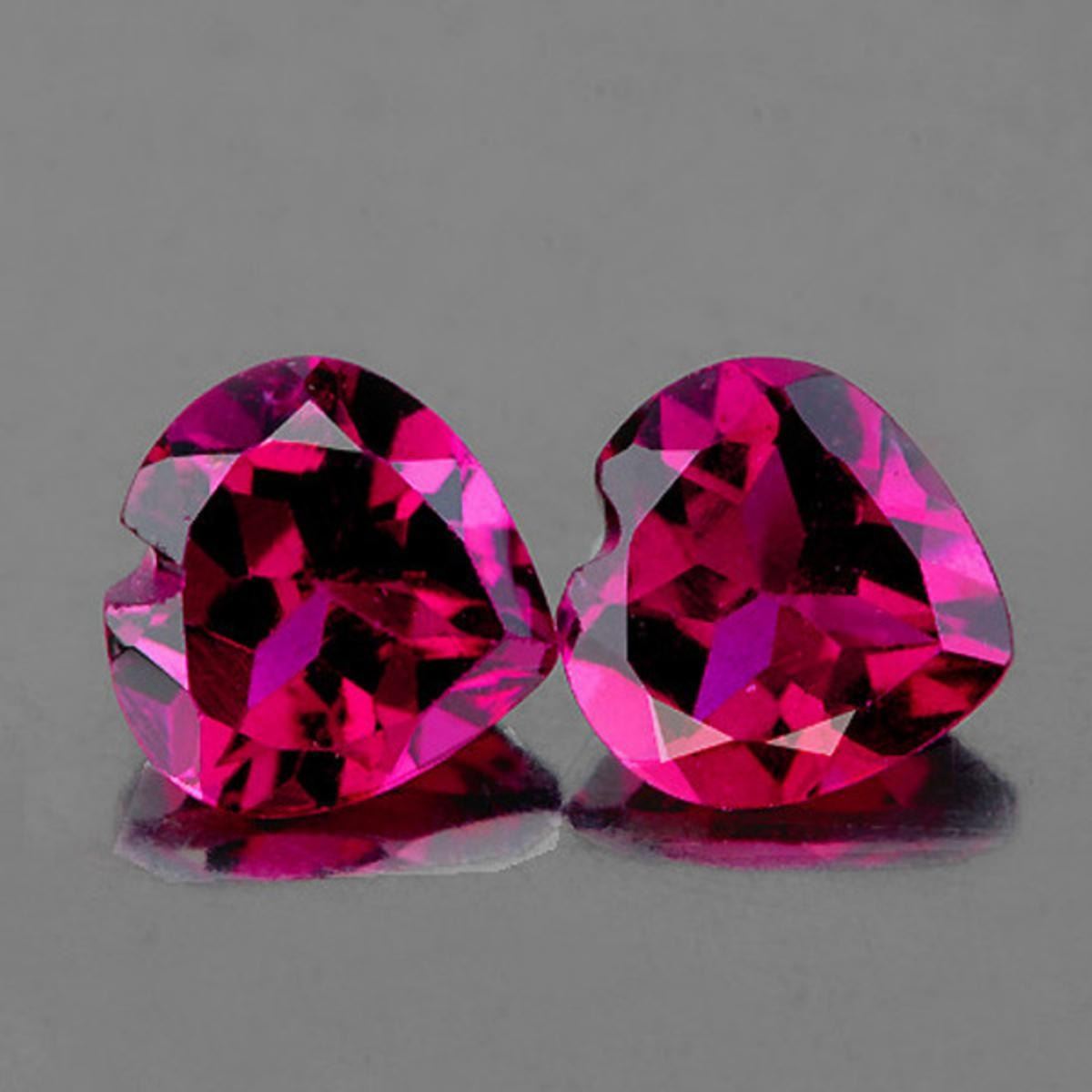 Natural Rhodolite (Earthly Mined)SIZE ( L x W x D ) : 6.00 mm;COLOR : Raspberry Pink;SHAPE : Heart;QUANTITY : 2 pieces;LUSTER : Excellent ;CLARITY : Flawless-VVS;HARDNESS : 6-7;ORIGIN : Umba Valley, Tanzania; TREATMENT : 100% Natural Unheated;