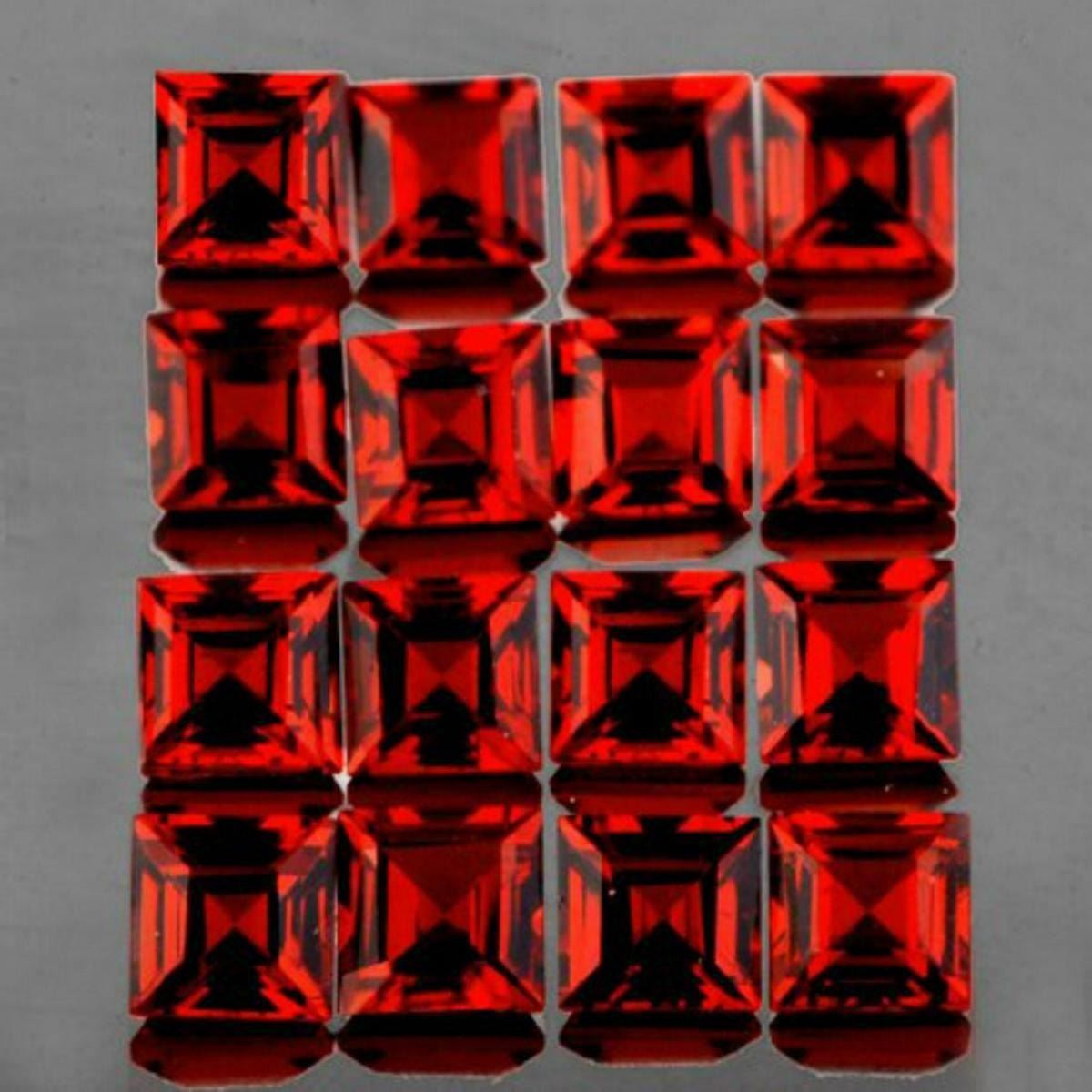 Natural Mozambique Garnet ; SHAPE : Square; SIZE ( L x W x D ) : 2.00 mm; QUANTITY : 50 pieces ( Perfectly Matched Set) COLOR : Fire Red AAA Color; CLARITY : Flawless-VVS1 AAA Grade; ORIGIN : Mozambique Africa; HARDNESS : 7; LUSTER : AAA Fire!! TREATMENT : 100% Natural Unheated;